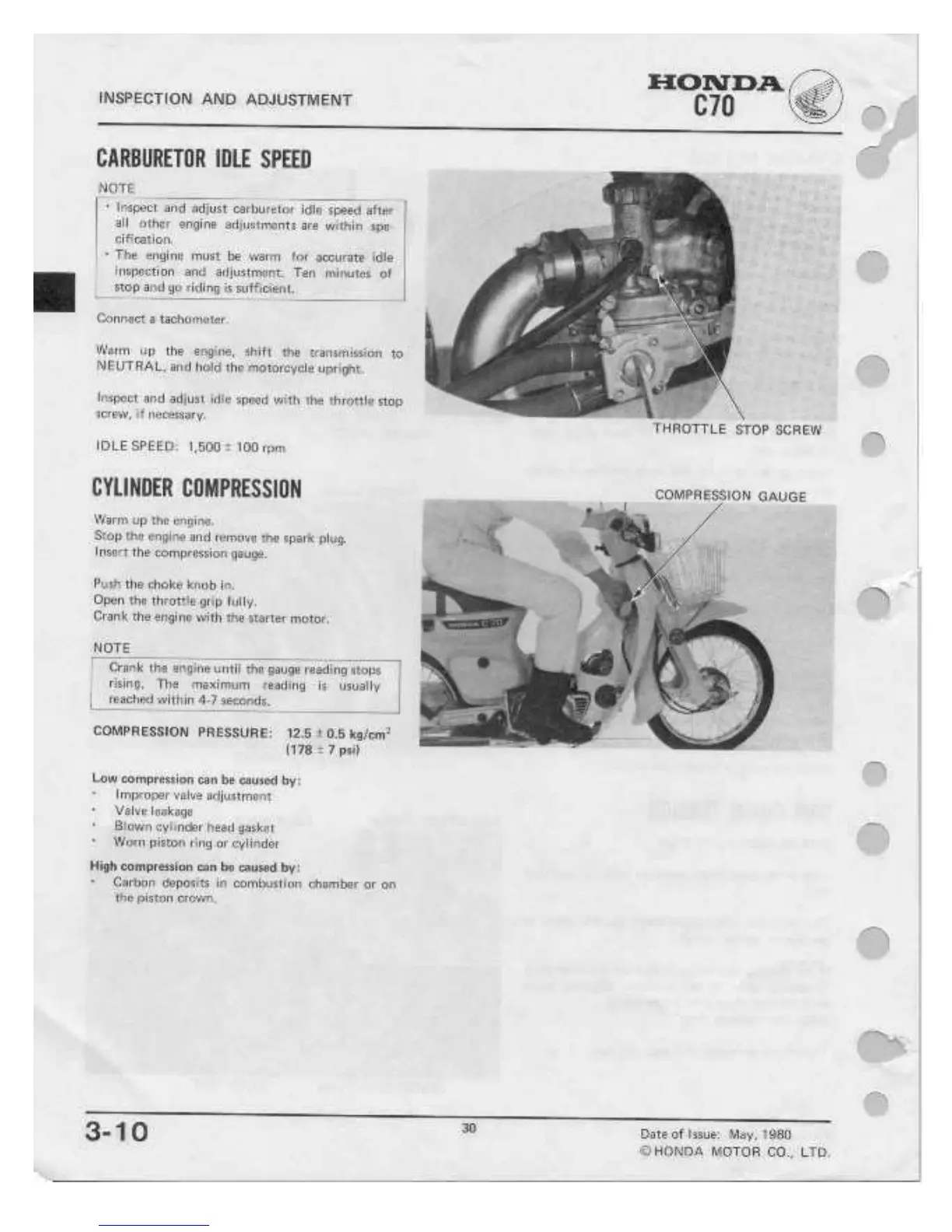 Honda C70 - Carburetor Idle Speed; Cylinder Compression