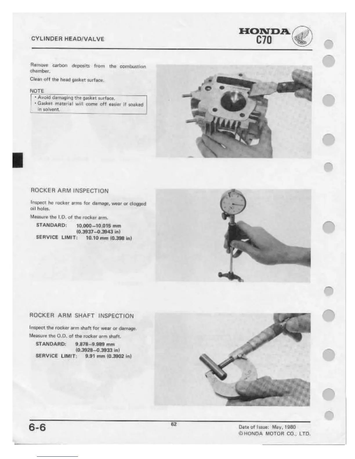 Honda C70 - Rocker Arm Inspection; Rocker Arm Shaft Inspection