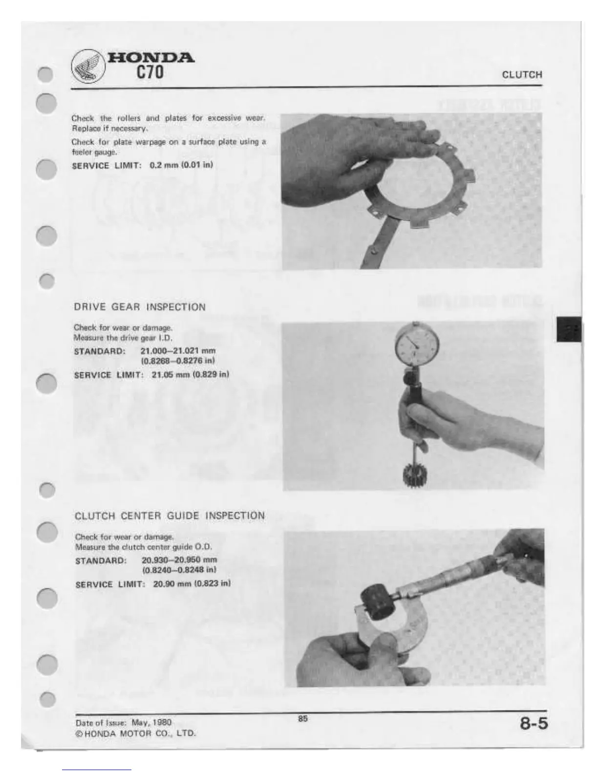 Honda C70 - Drive Gear Inspection; Clutch Center Guide Inspection