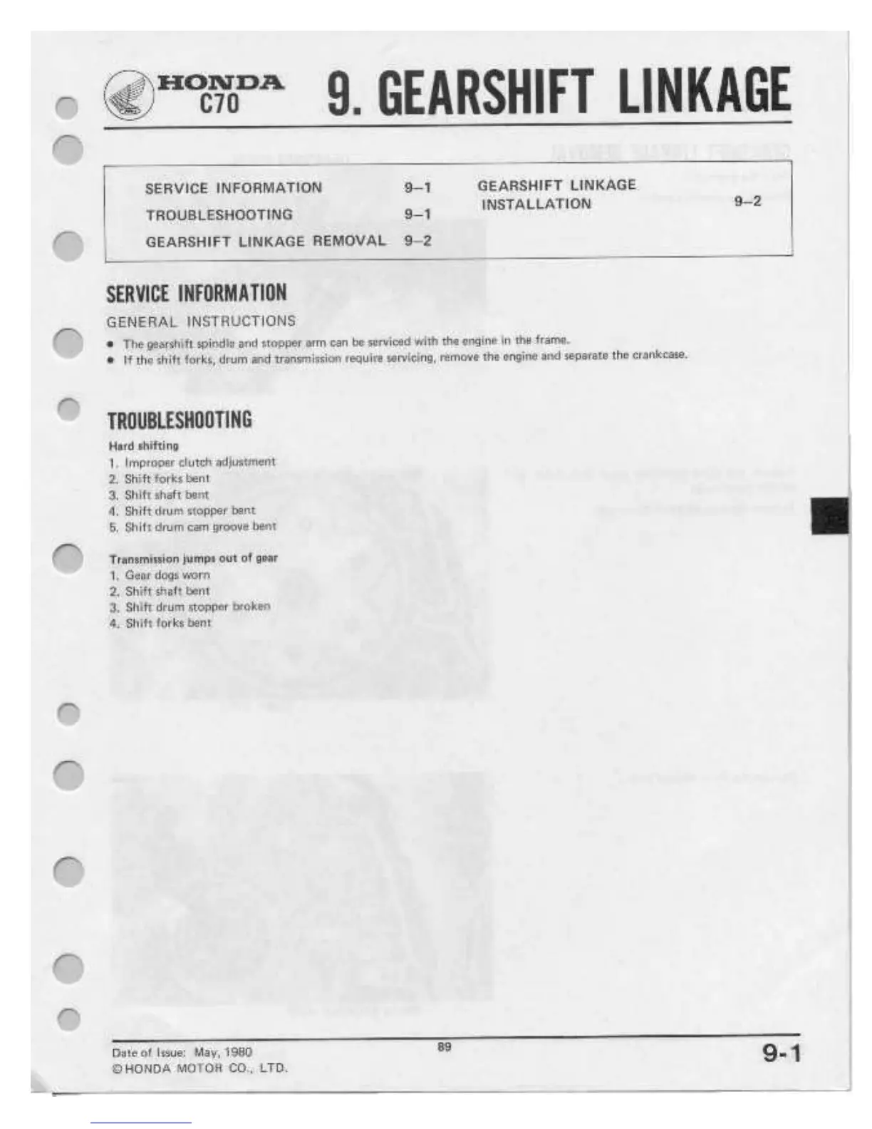 Honda C70 - Gearshift Linkage Service Information; Gearshift Linkage Troubleshooting