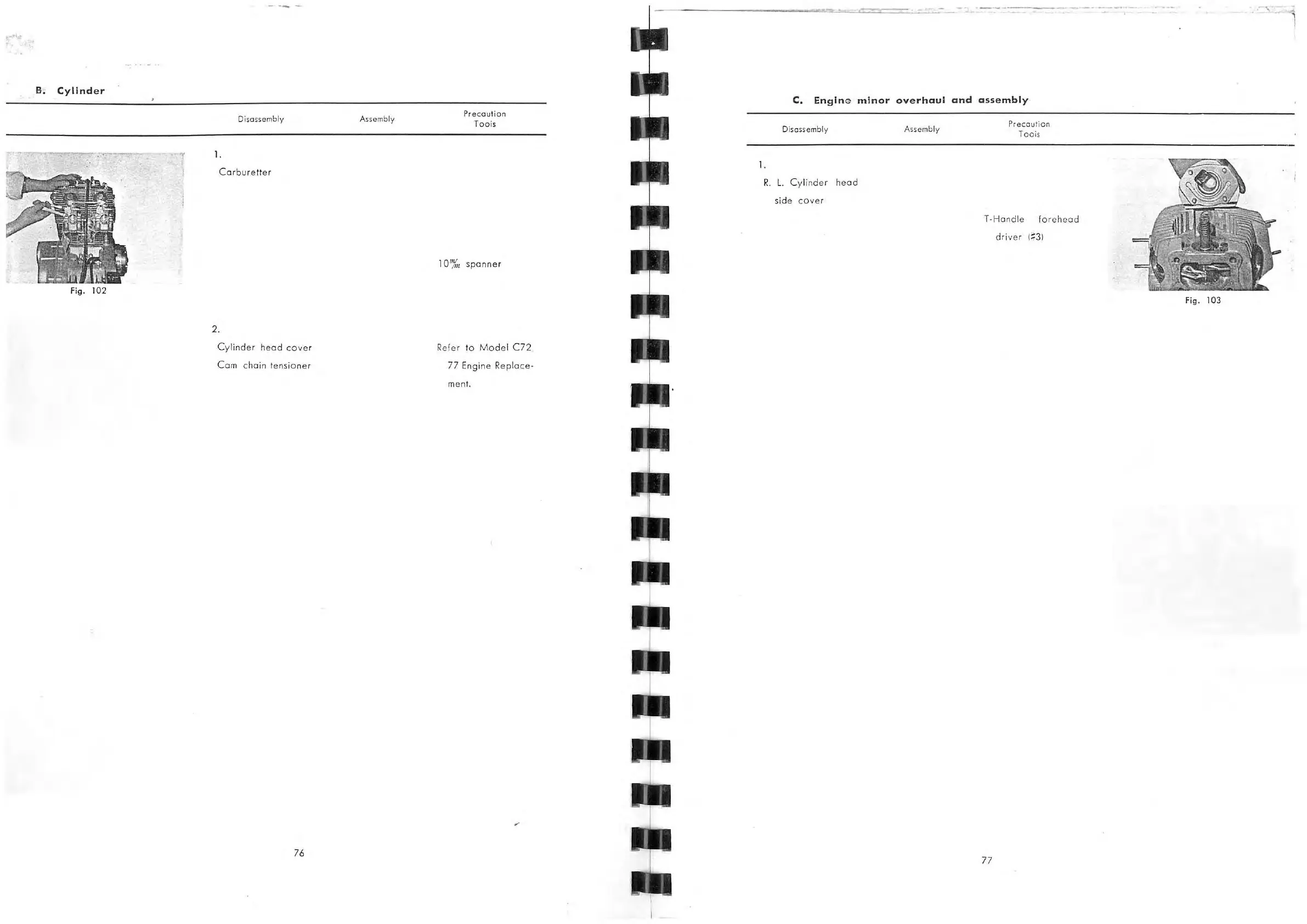 Honda C77 - Cylinder (CB72;77) Disassembly and Assembly; B. Cylinder; 1. Carburetter; 2. Cylinder head cover