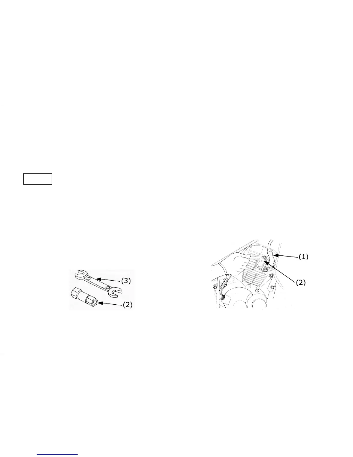 (1) Tapa de la bujía (2) Llave de bujía