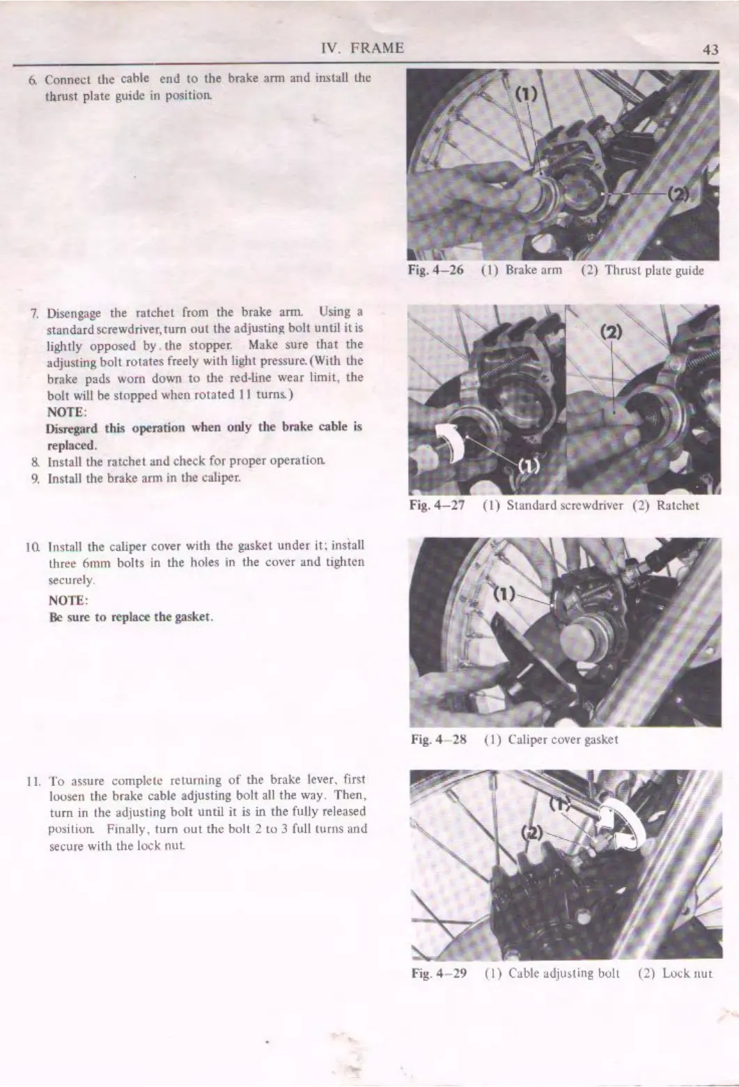 Cable adjusting bolt (2) Lock.
