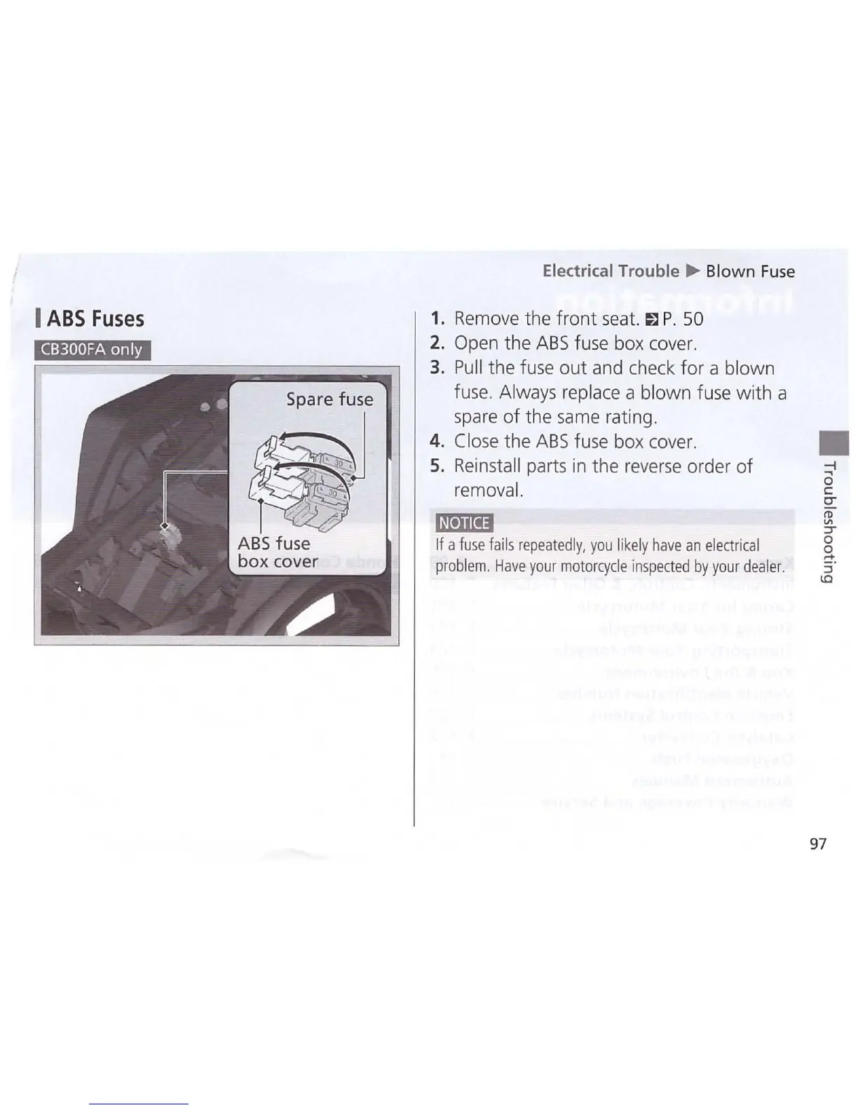 Honda CB300FA - ABS Fuses