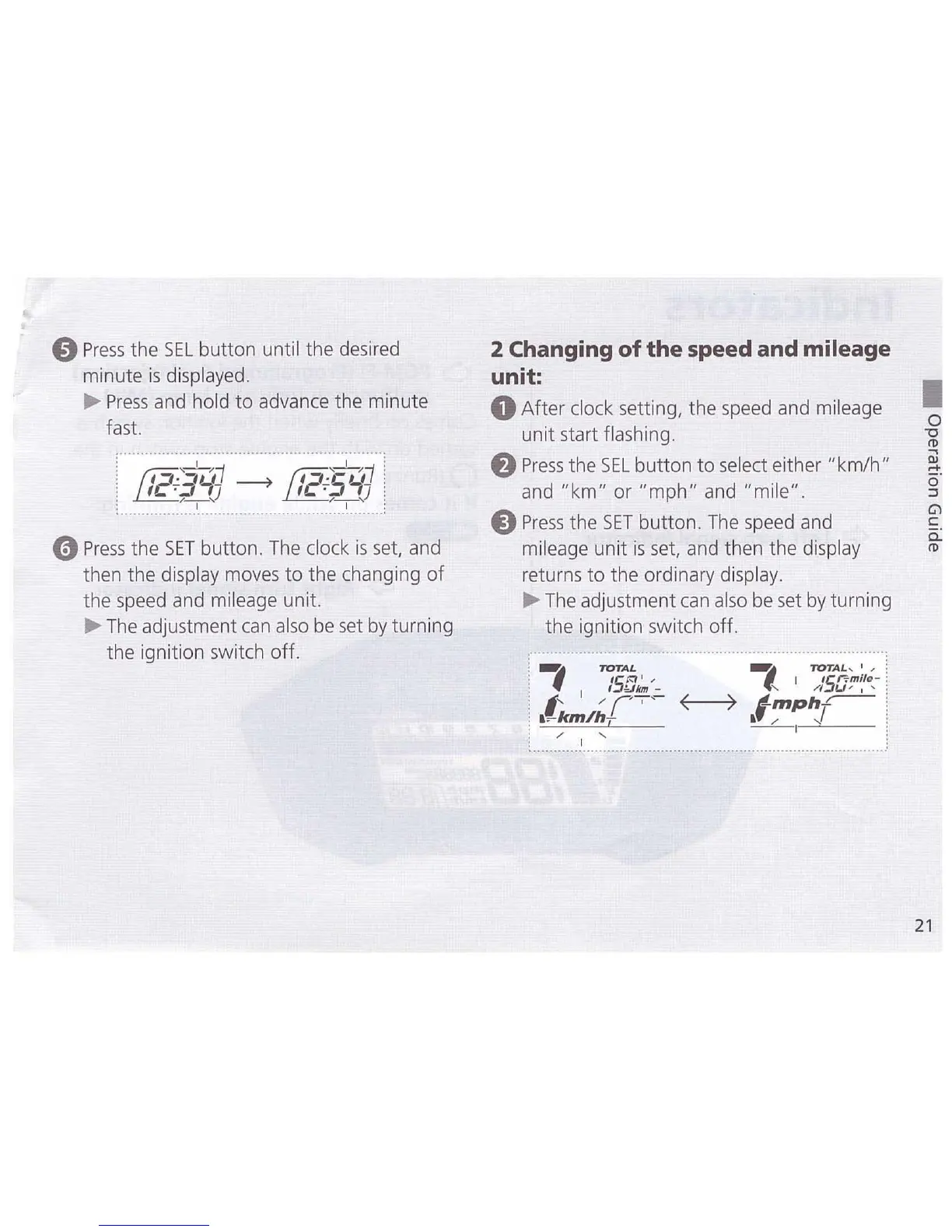 0 After clock setting, the speed and mileage