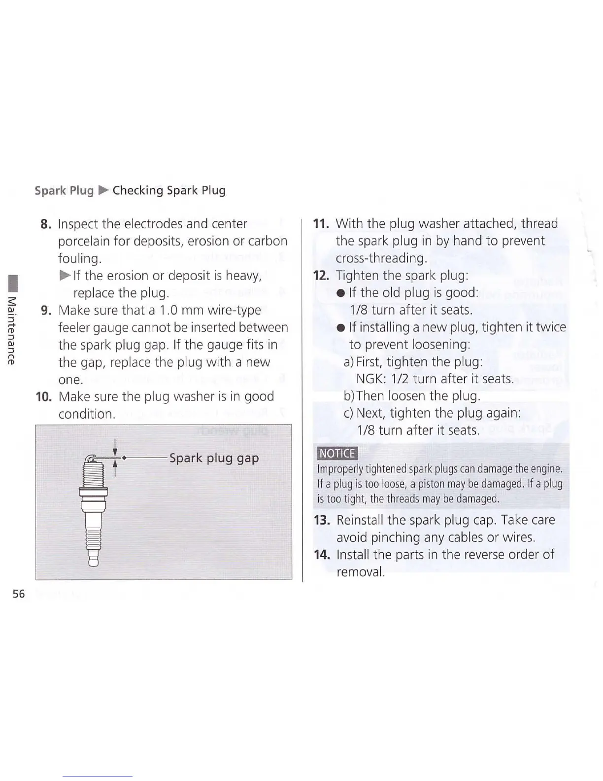 the gap, replace the plug
