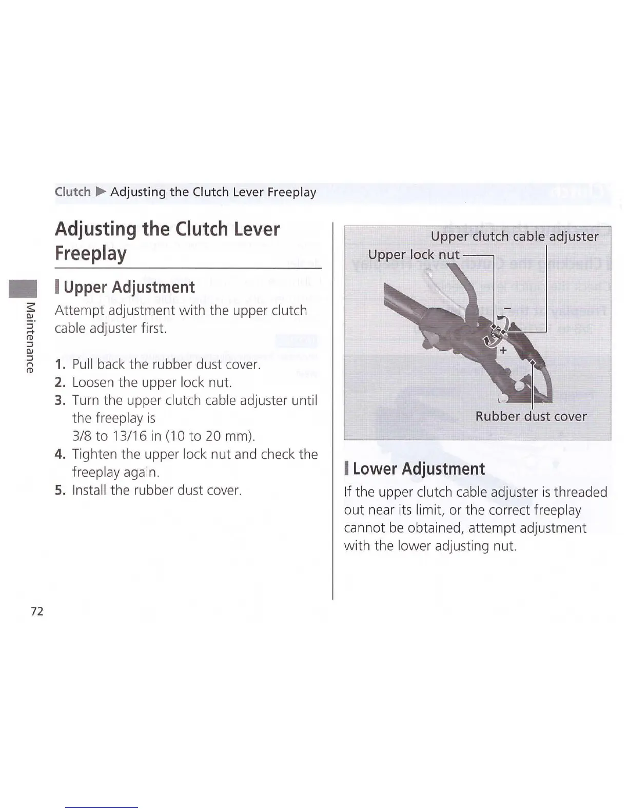 If the upper clutch cable adjuster