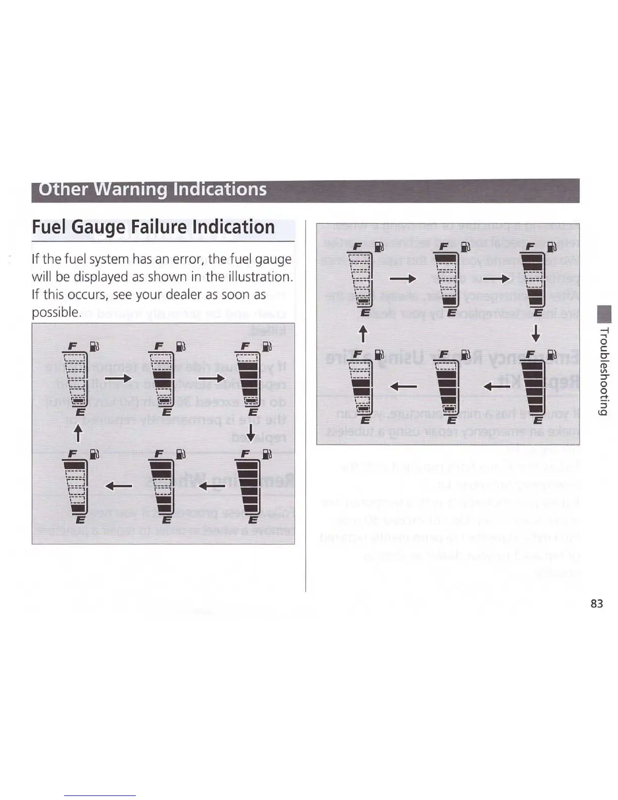 Honda CB300FA - Other Warning Indicators; Fuel Gauge Failure Indication