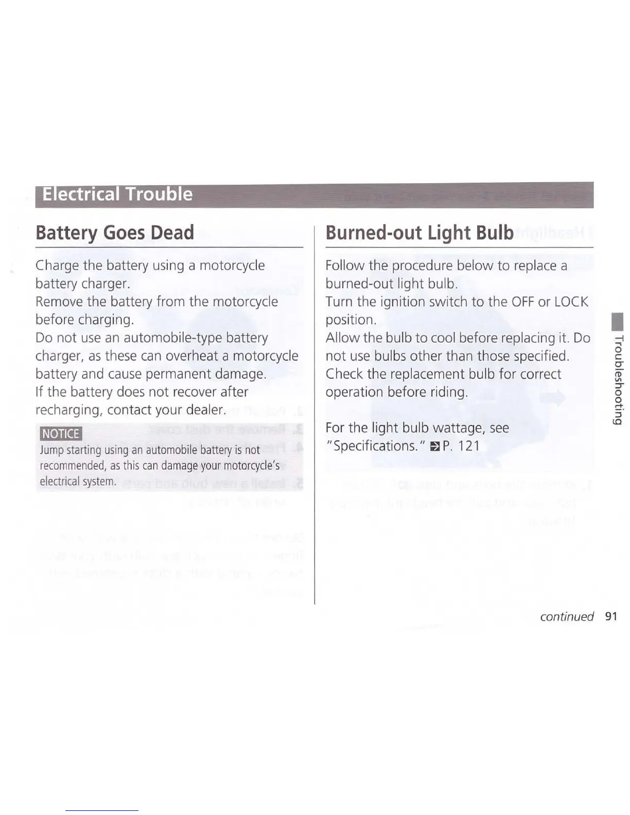 Honda CB300FA - Electrical Trouble; Battery Goes Dead; Burned-Out Light Bulb