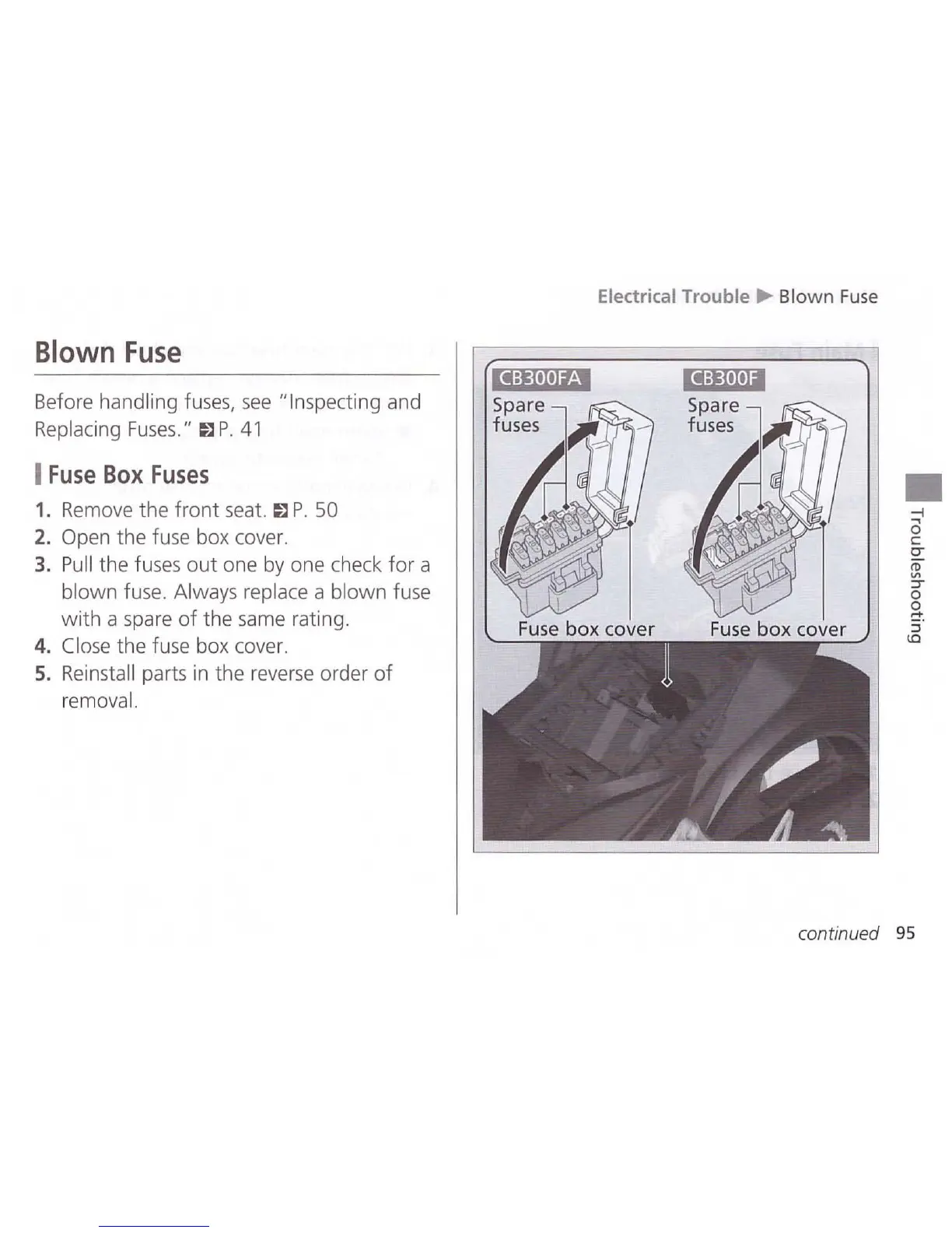 Honda CB300FA - Blown Fuse; Fuse Box Fuses