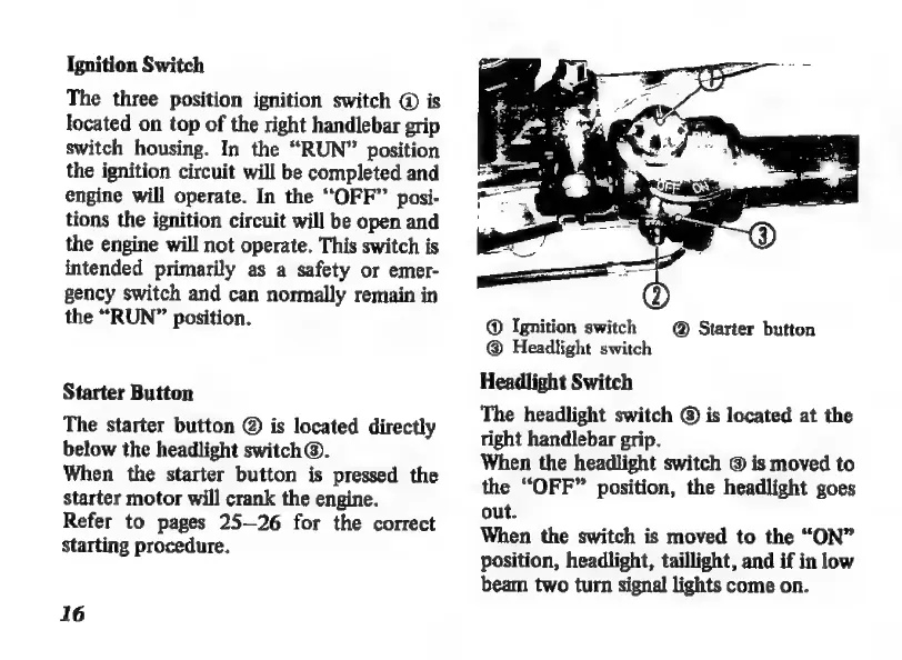 Honda CB360 - Ignition and Starting Controls