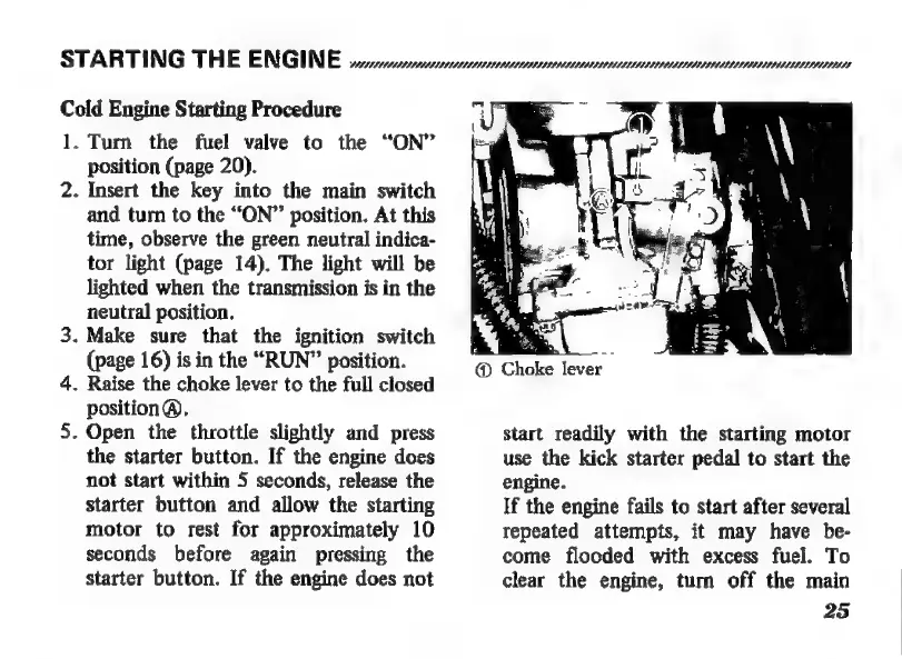 Honda CB360 - Engine Operation; Cold Engine Starting Procedure