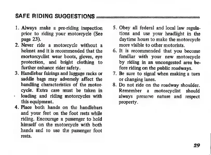 Honda CB360 - Safety and Riding Tips; Safe Riding Suggestions