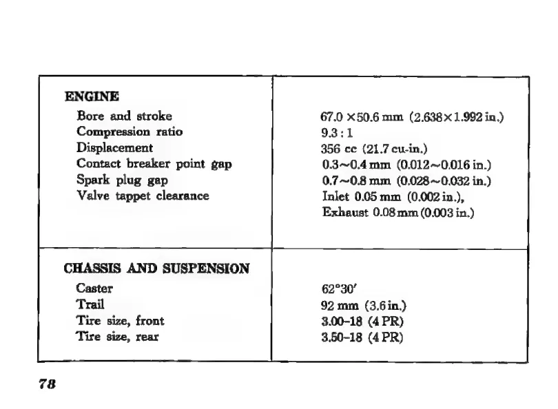 Honda CB360 - Technical Specifications; Engine and Chassis Specifications