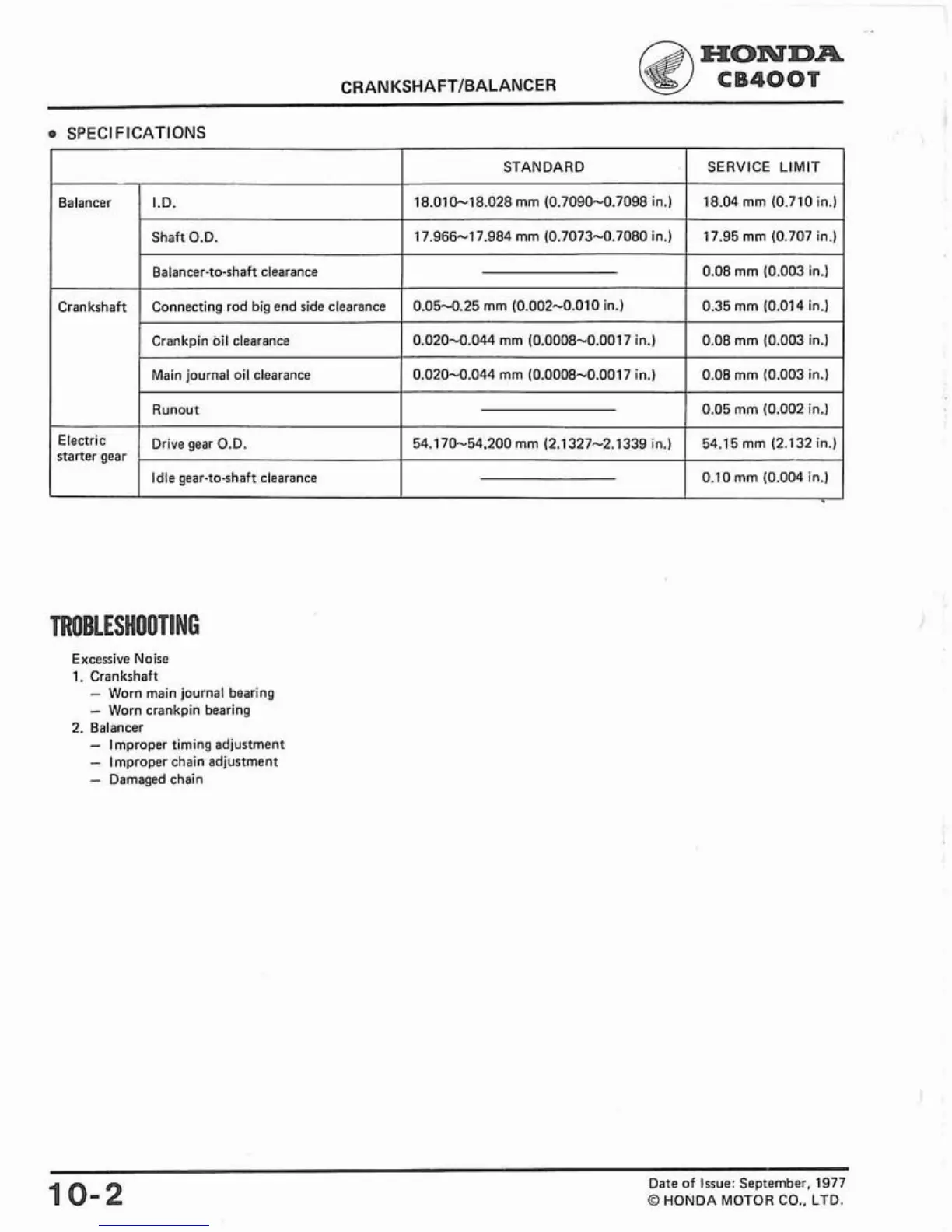 Balancer-to-shaft clearance