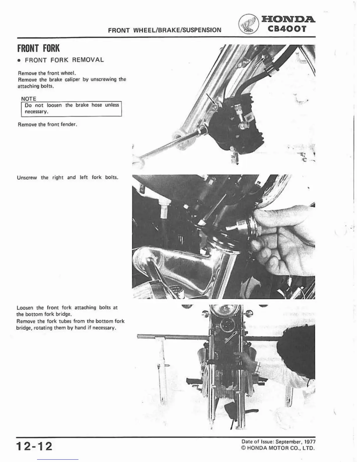 Loosen the front fork attaching bolts