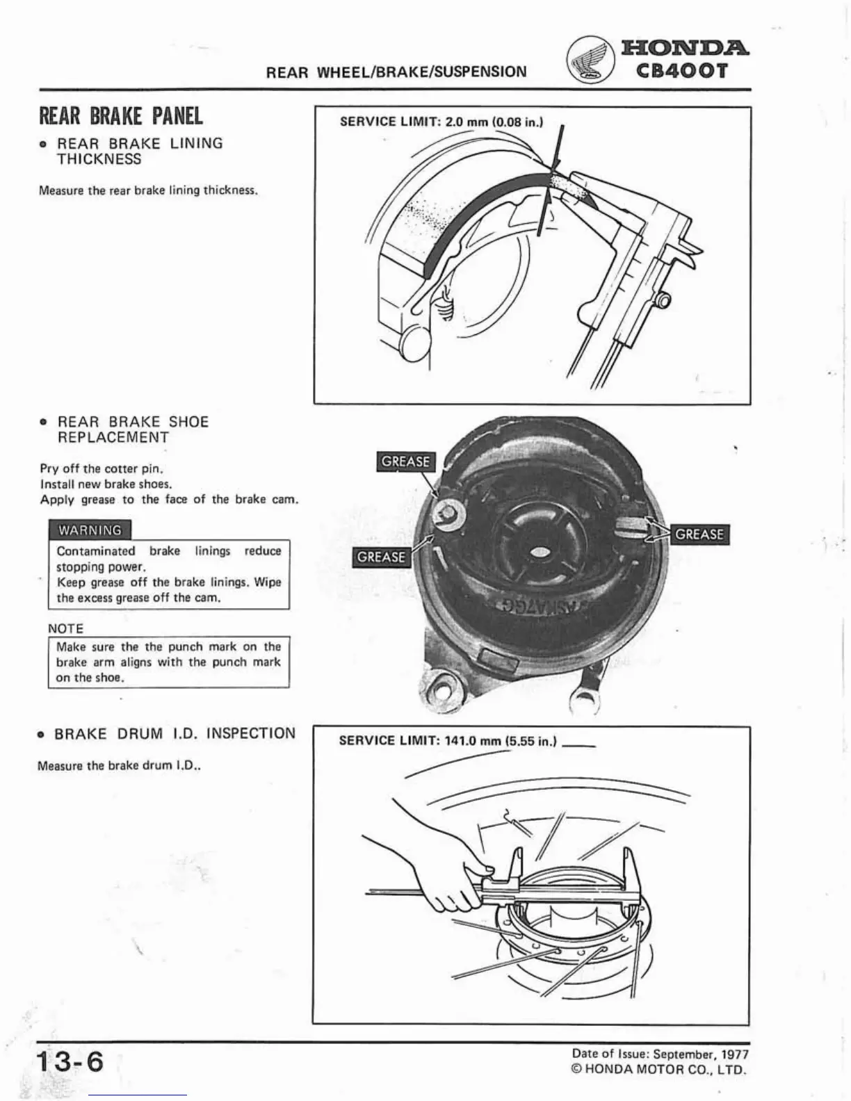 Measure the rear brake lining thickness.