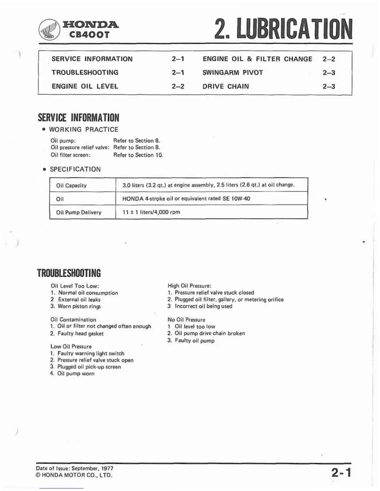 SERVICE INFORMATION 2-1 ENGINE OIL