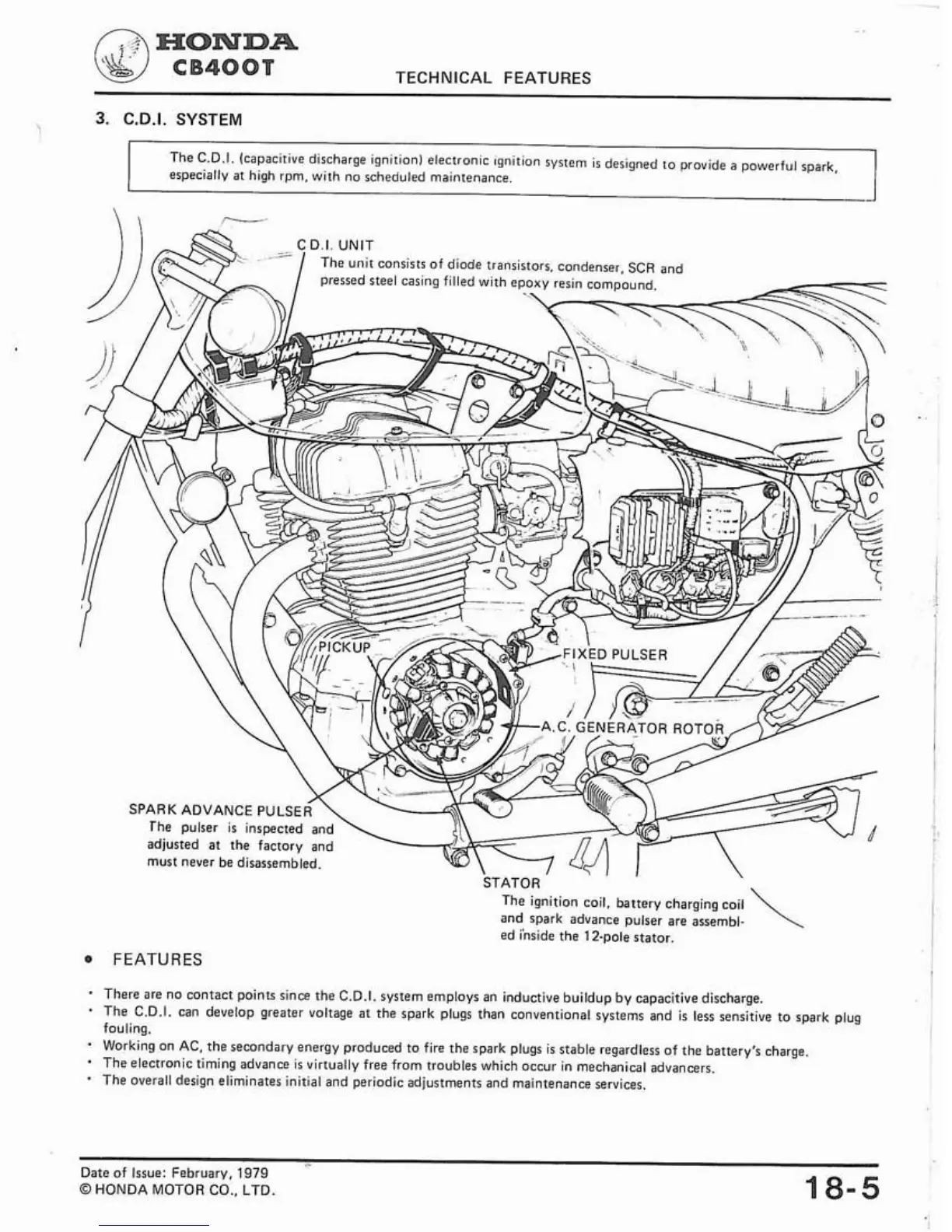The C.D.I. (capacitive discharge ignition) electronic ignition system is designed to provide a powerful spark,