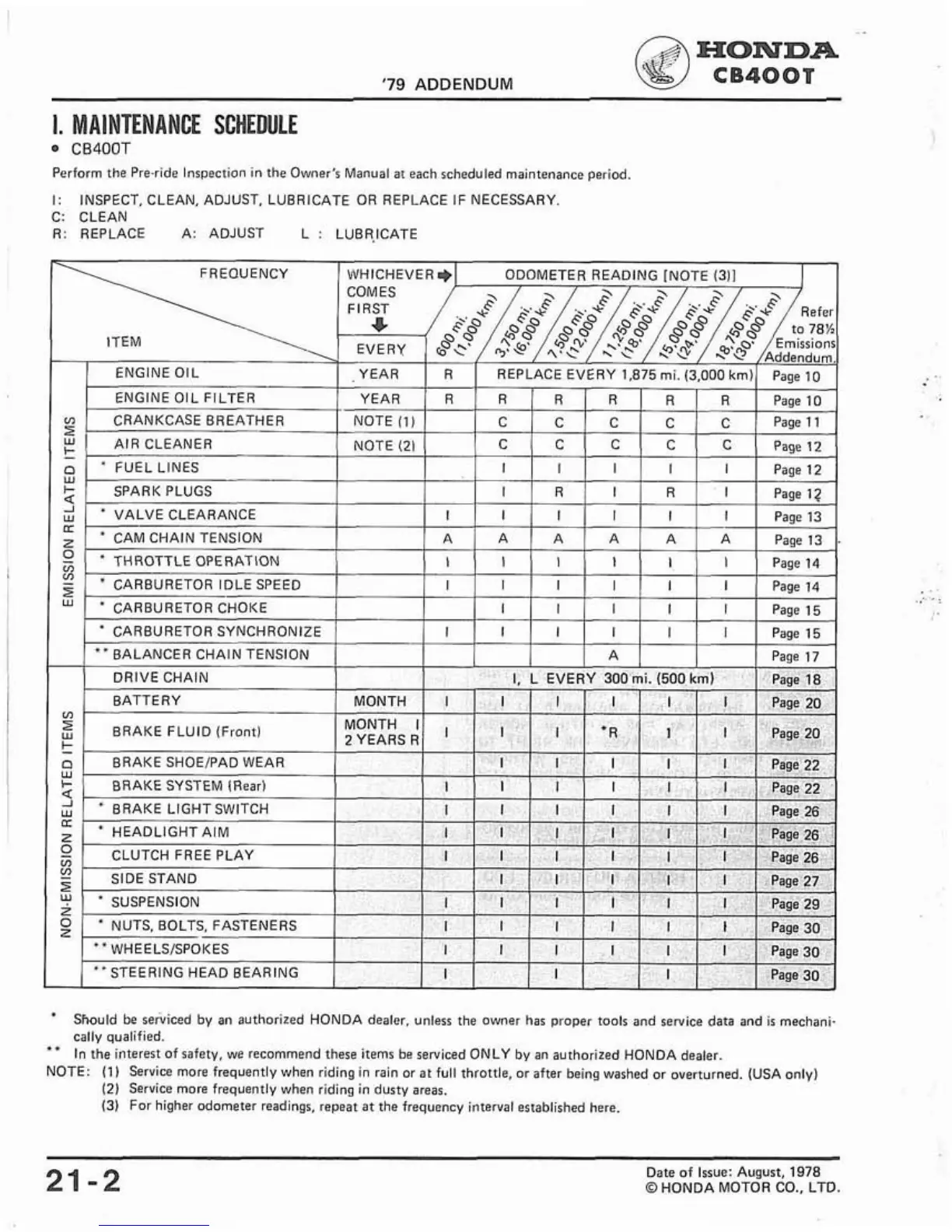 NOTE: (1) Service more frequently when riding in rain or at full throttle, or after being washed or overturned. (USA only)