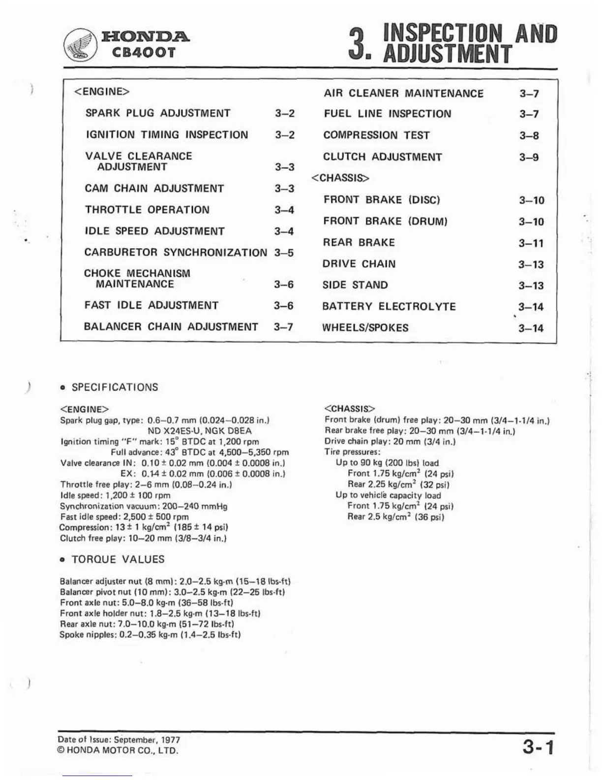 SPARK PLUG ADJUSTMENT 3-2 FUEL LINE INSPECTION 3-7