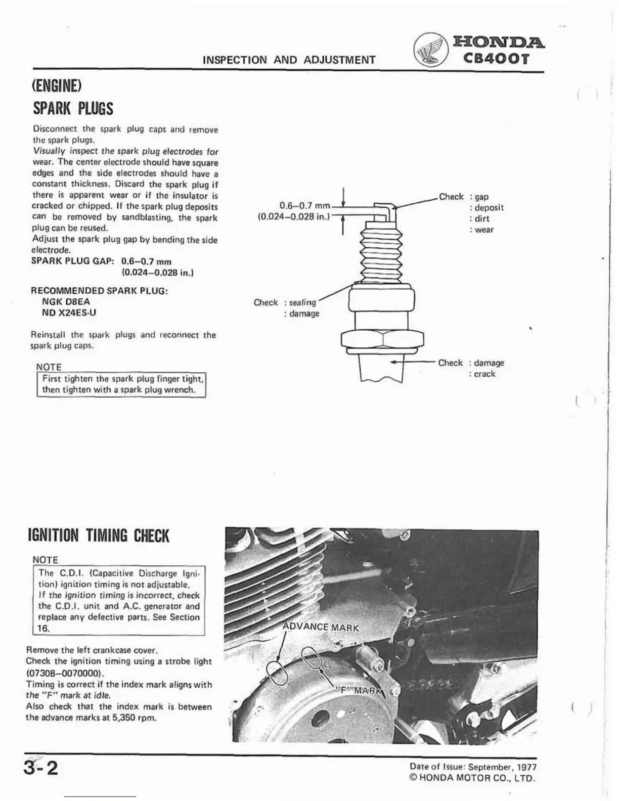 SPARK PLUG GAP: 0.6-0.7