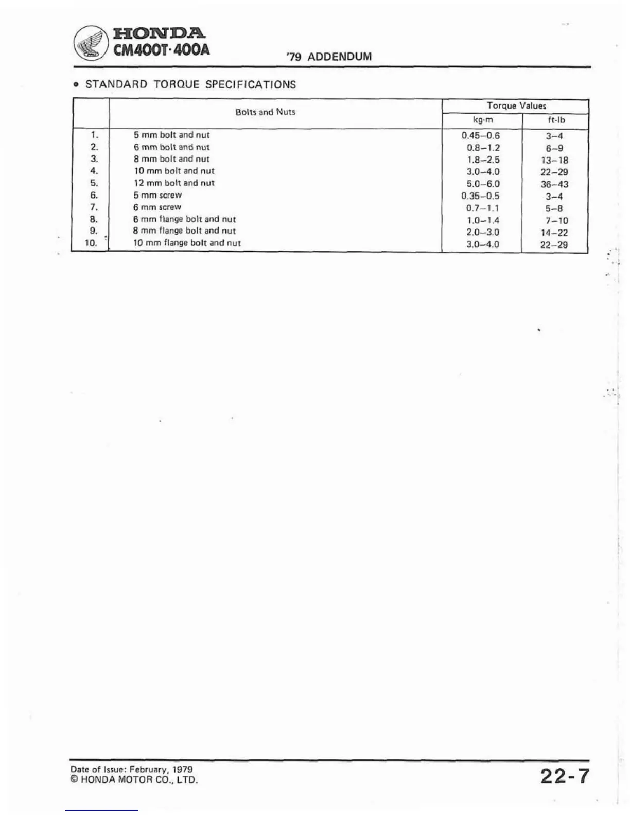 STANDARD TORQUE SPECIFICATIONS