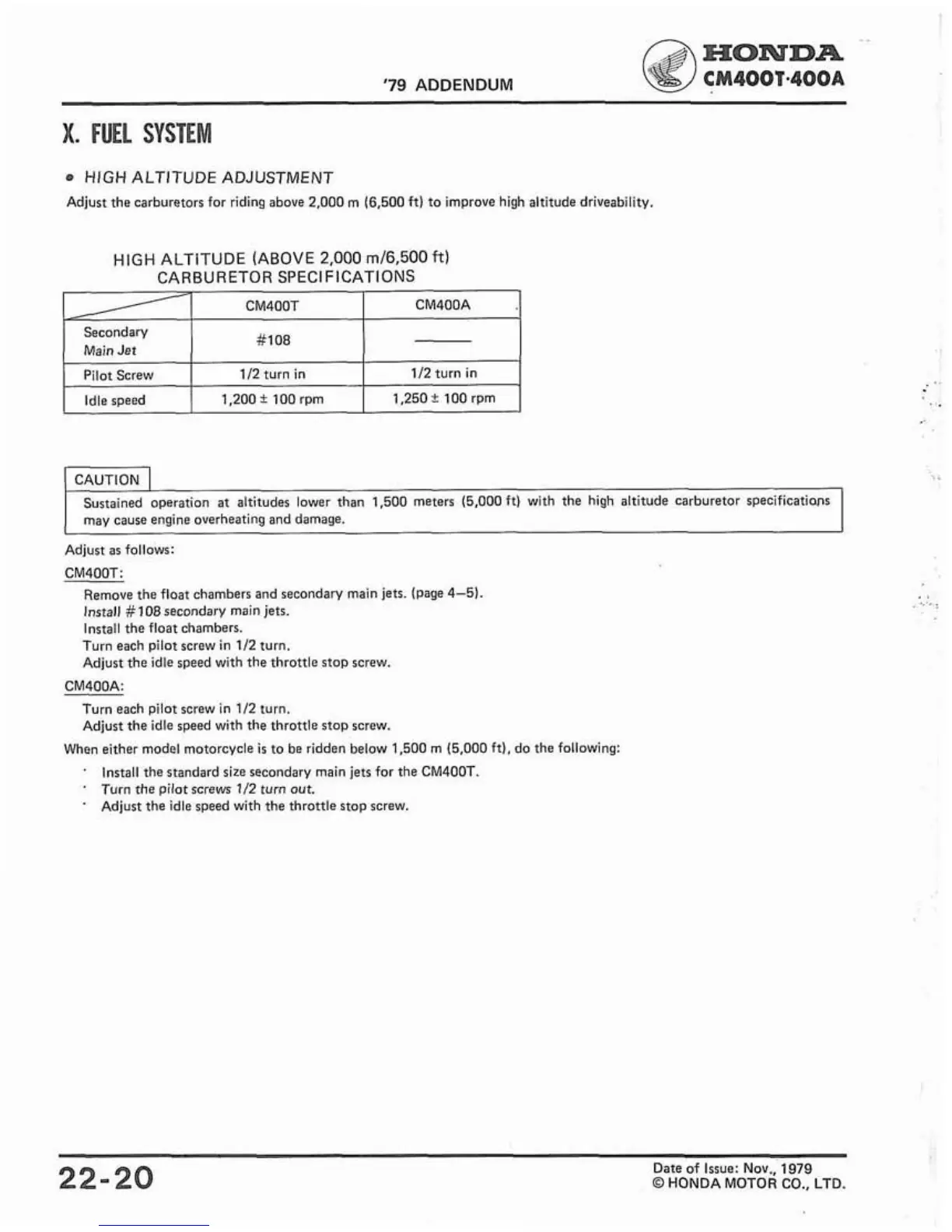 Adjust the carburetors for riding above 2,000 m (6,500 ft) to improve high altitude driveability.