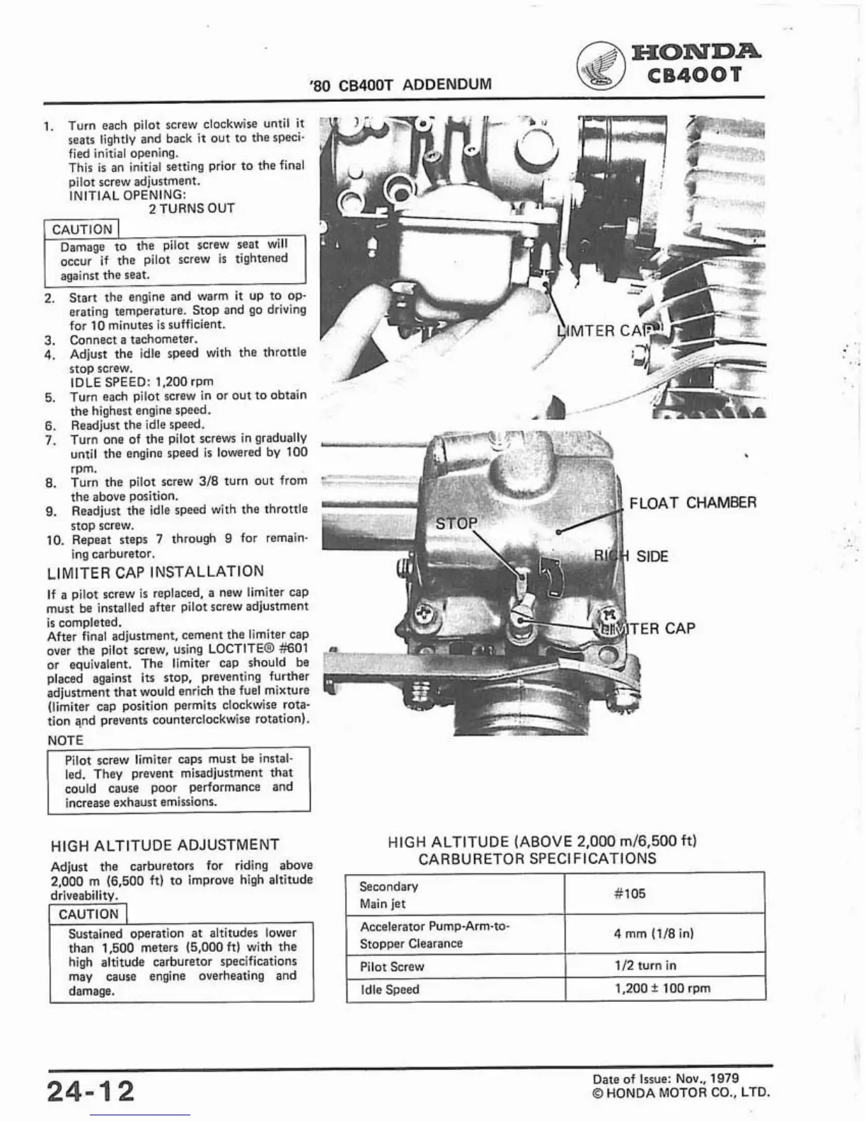 high altitude carburetor specifications