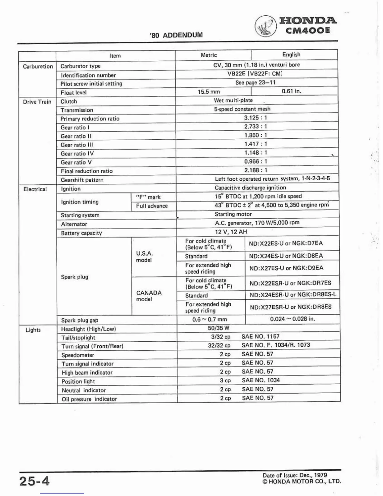 Other manuals for Honda CB400A
