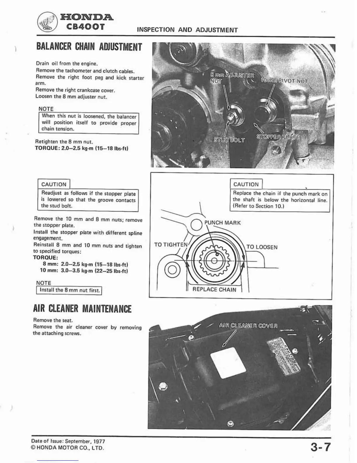 BALANCER CHAIN ADJUSTMENT