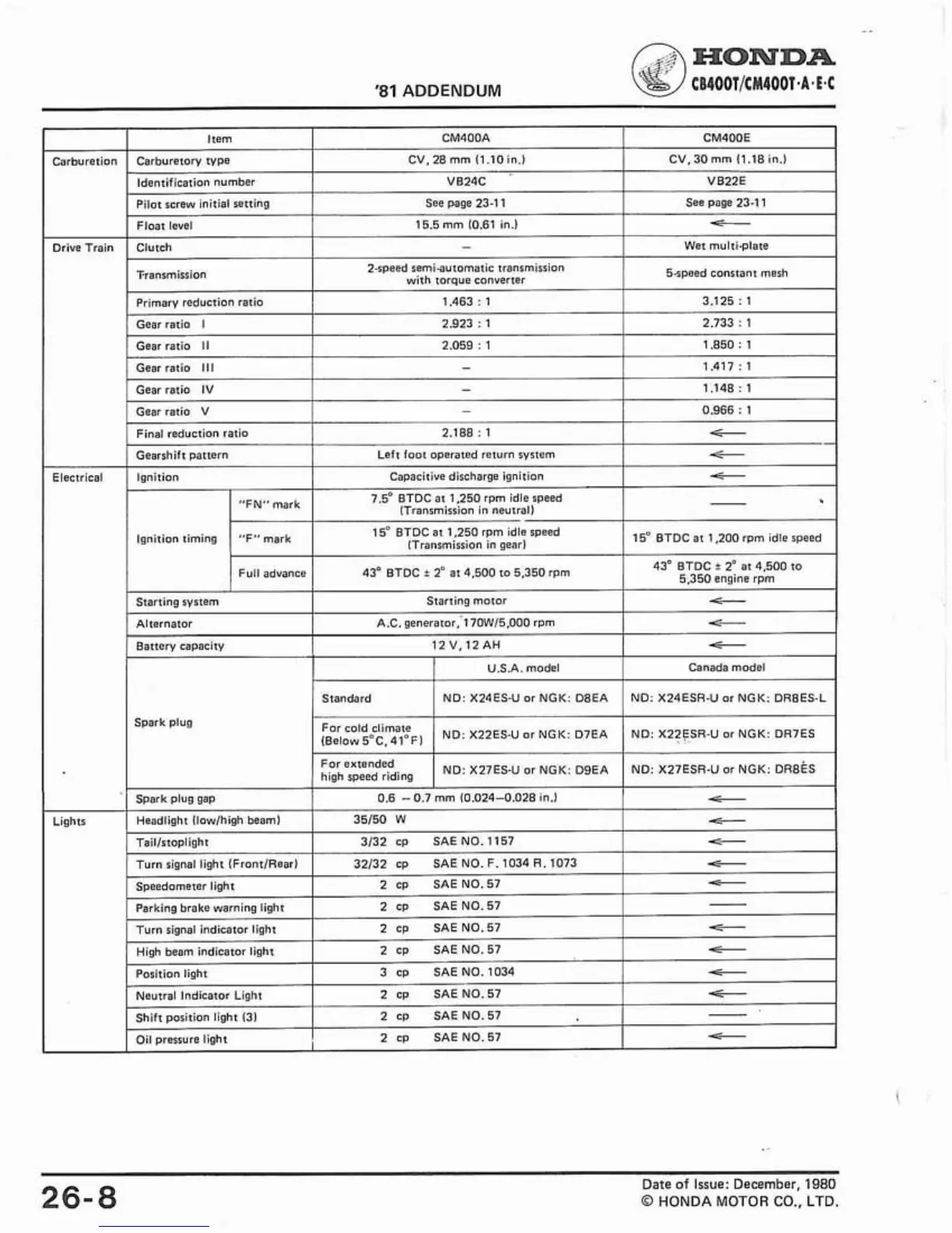 Other manuals for Honda CB400A
