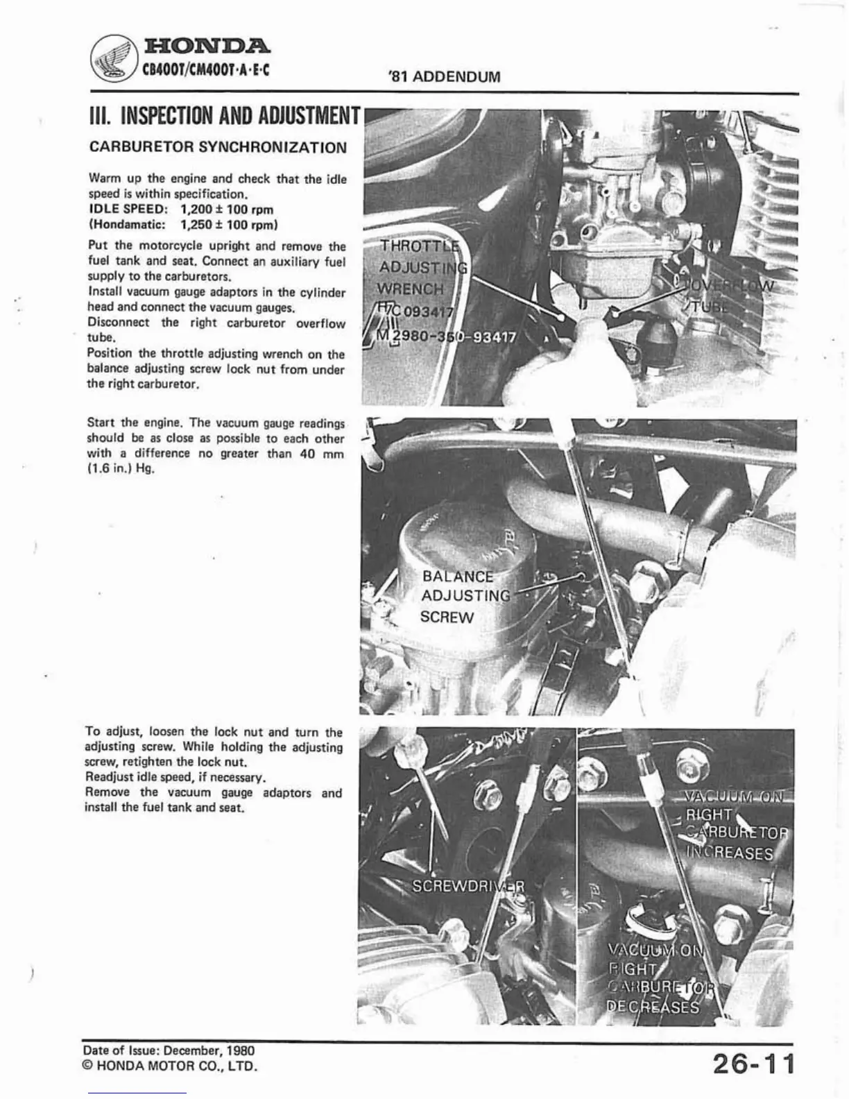 CARBURETOR SYNCHRONIZATION