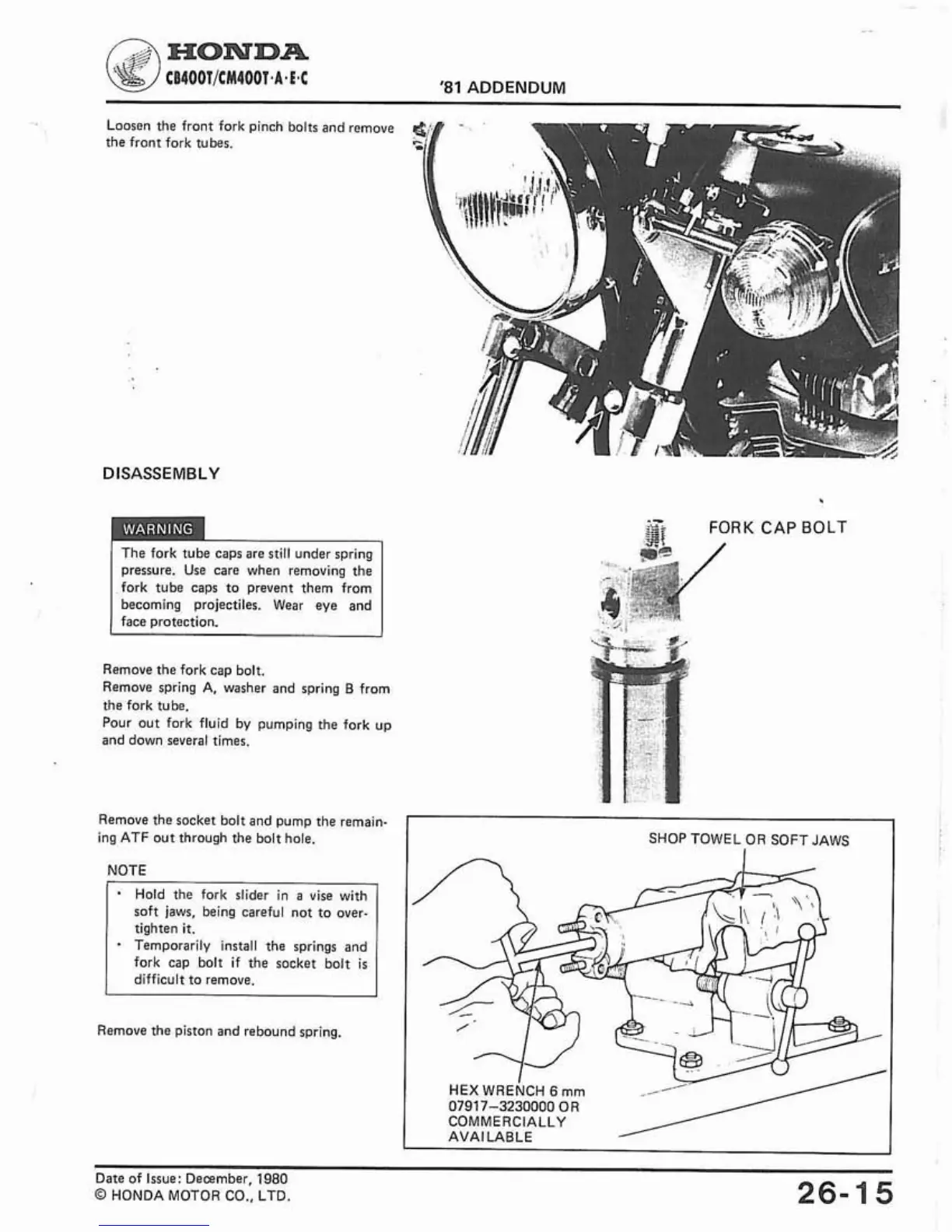 Remove the fork cap bolt.