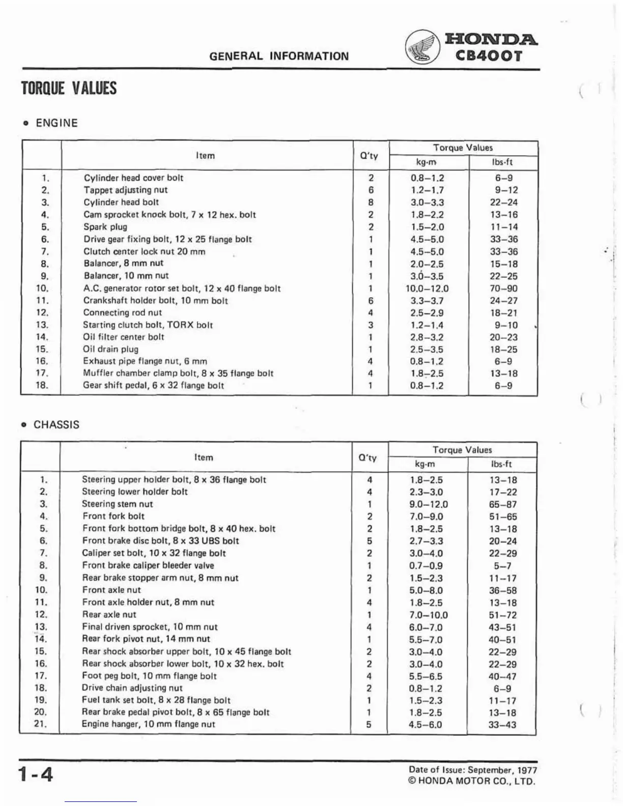 TORQUE VALUES
