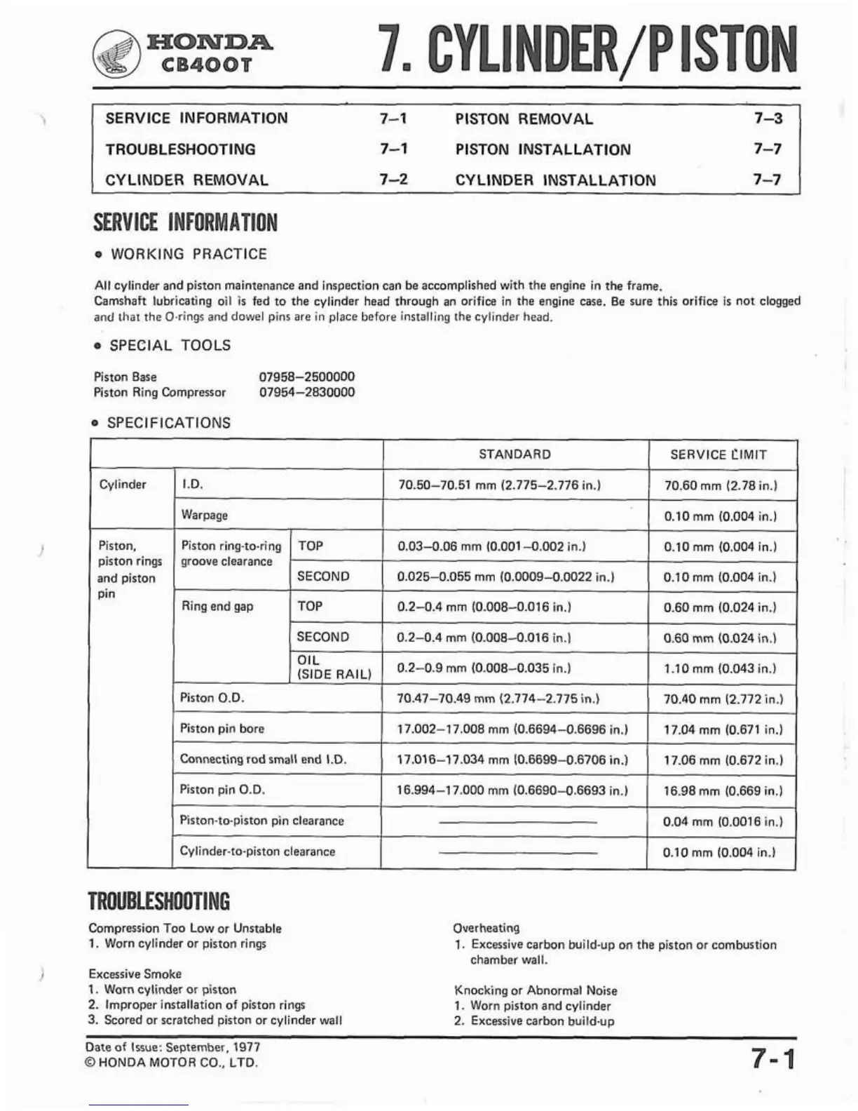 All cylinder and piston maintenance and inspection can be accomplished with the engine in the frame.