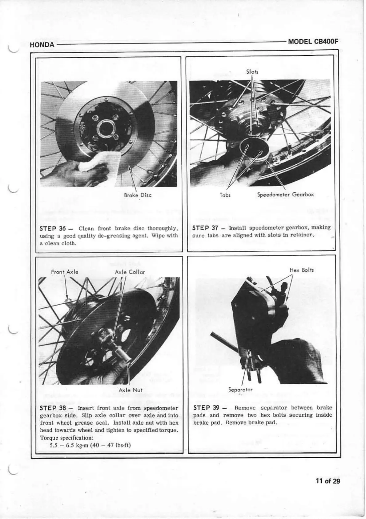 Honda CB400F - Front Wheel Brake and Speedometer Gearbox; Clean Front Brake Disc; Install Speedometer Gearbox