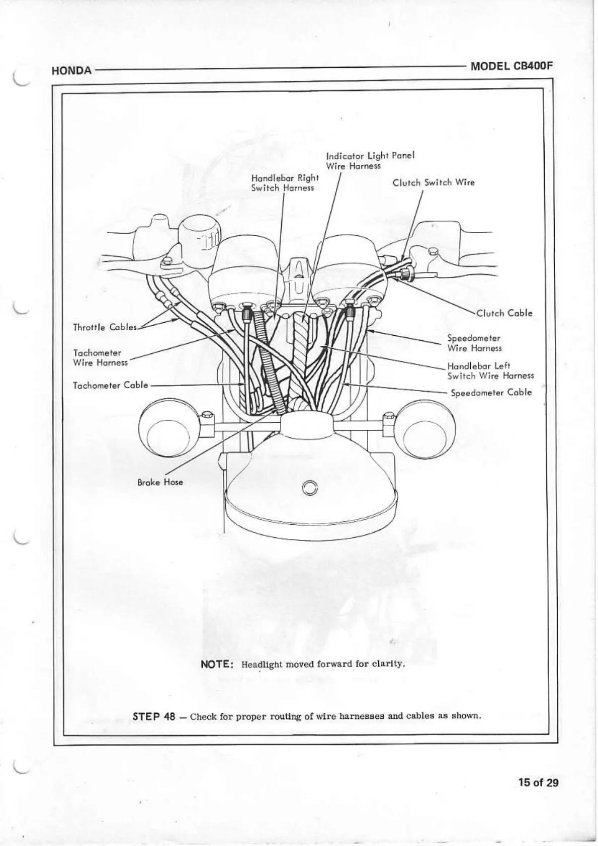 Honda CB400F - Wire Harness and Cable Routing Verification; Verify Wire Harness and Cable Routing