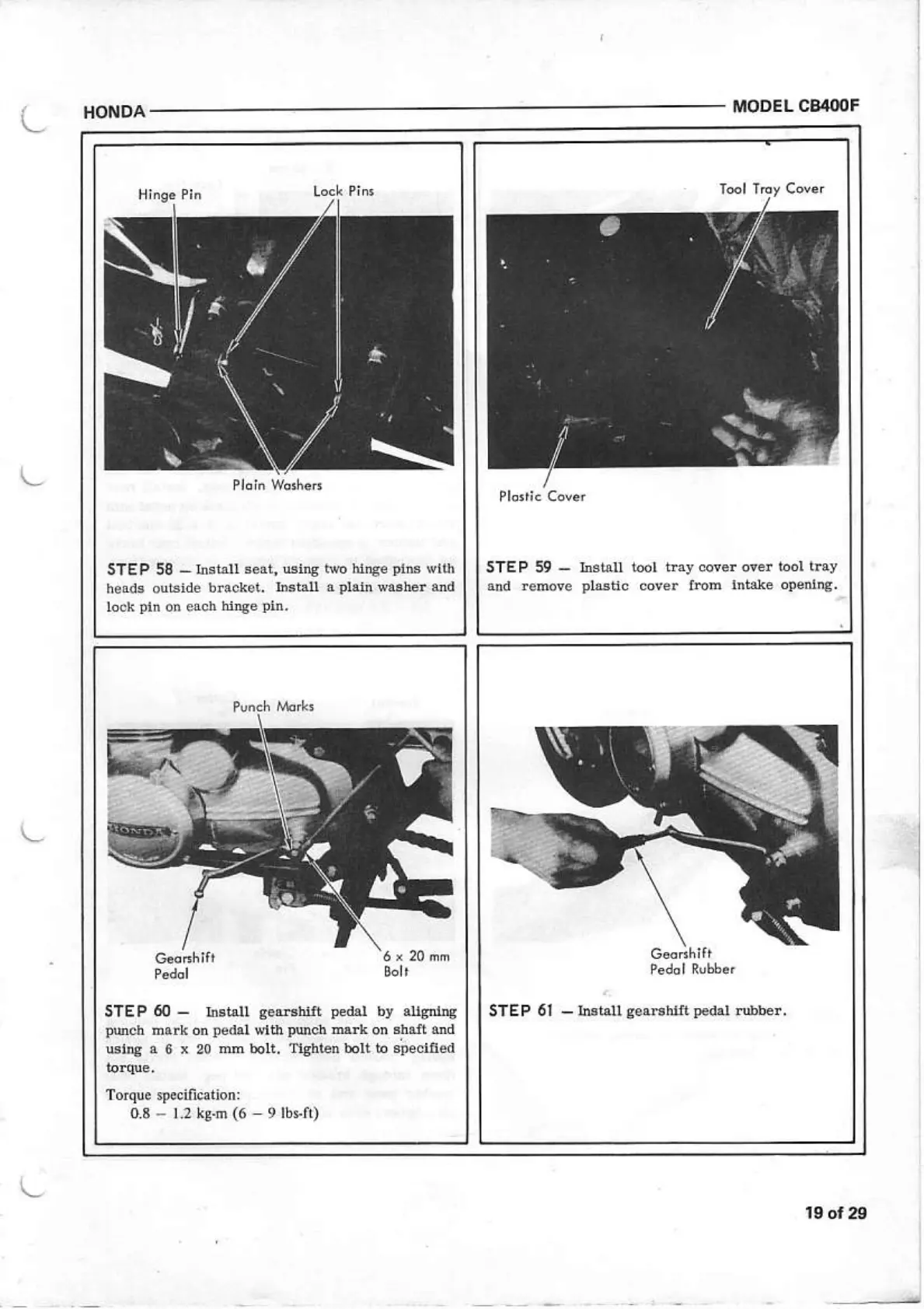 Honda CB400F - Seat and Gearshift Pedal Installation; Install Seat; Install Gearshift Pedal