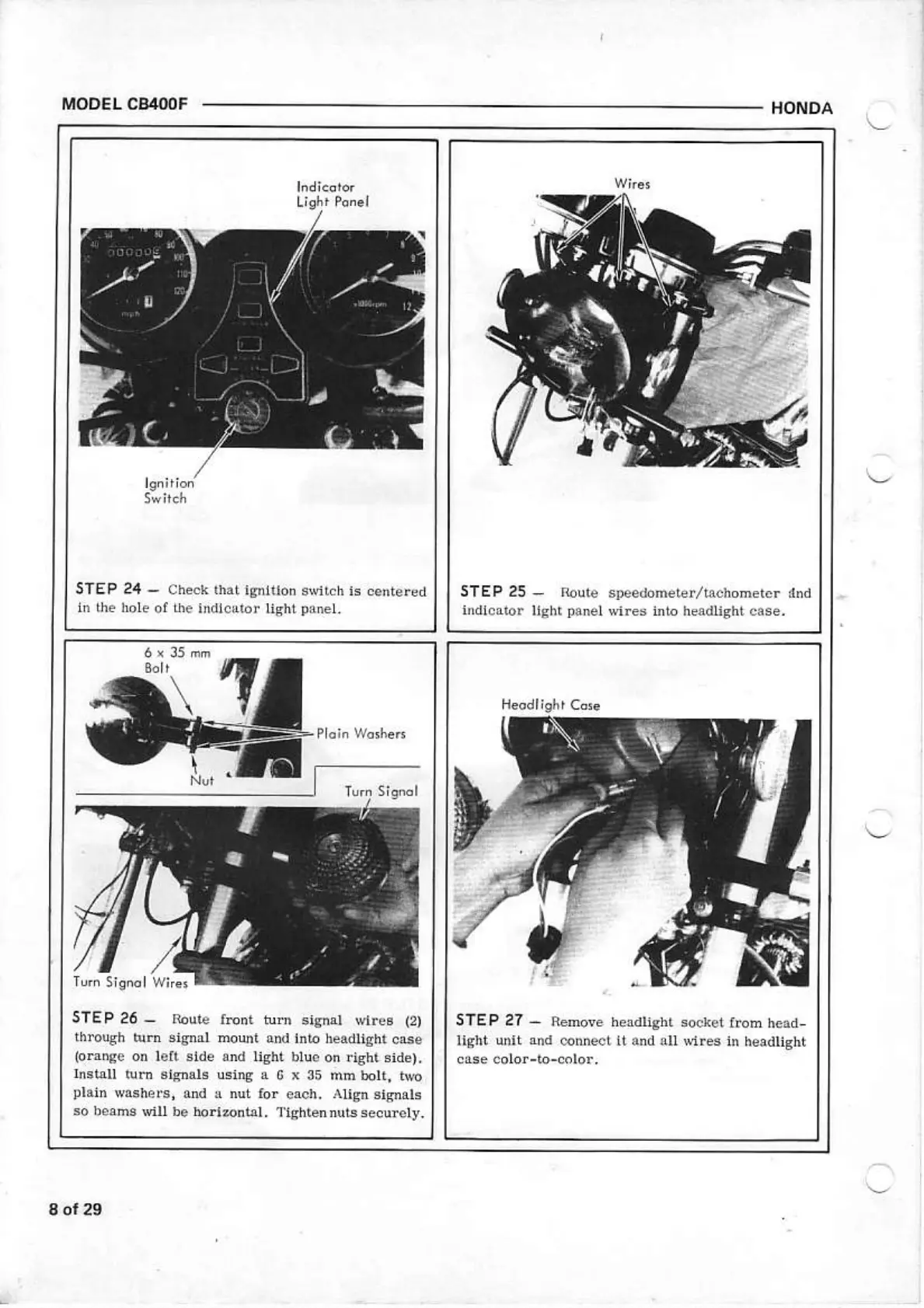 Honda CB400F - Ignition Switch and Headlight Wiring; Ignition Switch and Wire Routing; Install Front Turn Signals