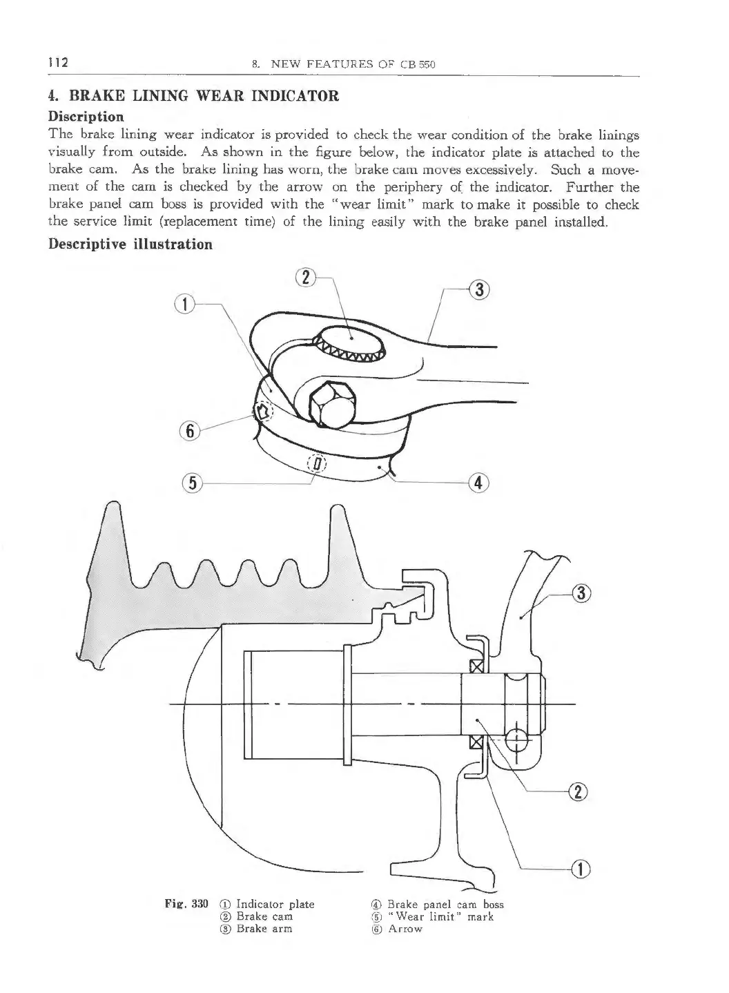 brake panel cam boss is provided with the "wear limit" mark to make it possible to check