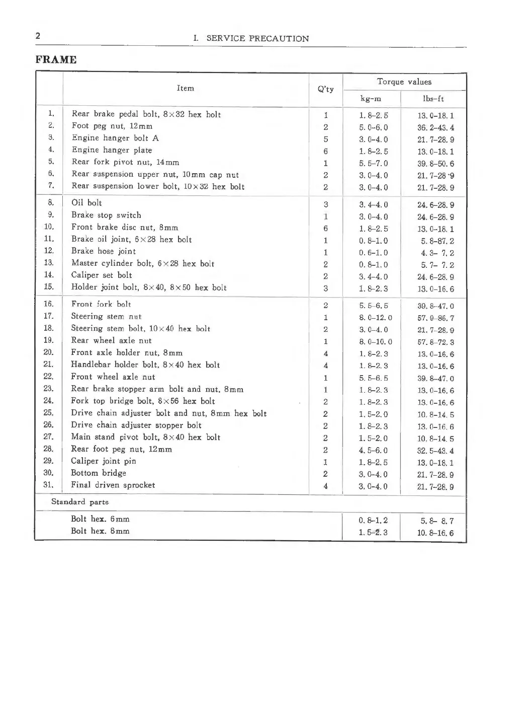 25. Drive chain adjuster bolt and nut, 8mm hex bolt