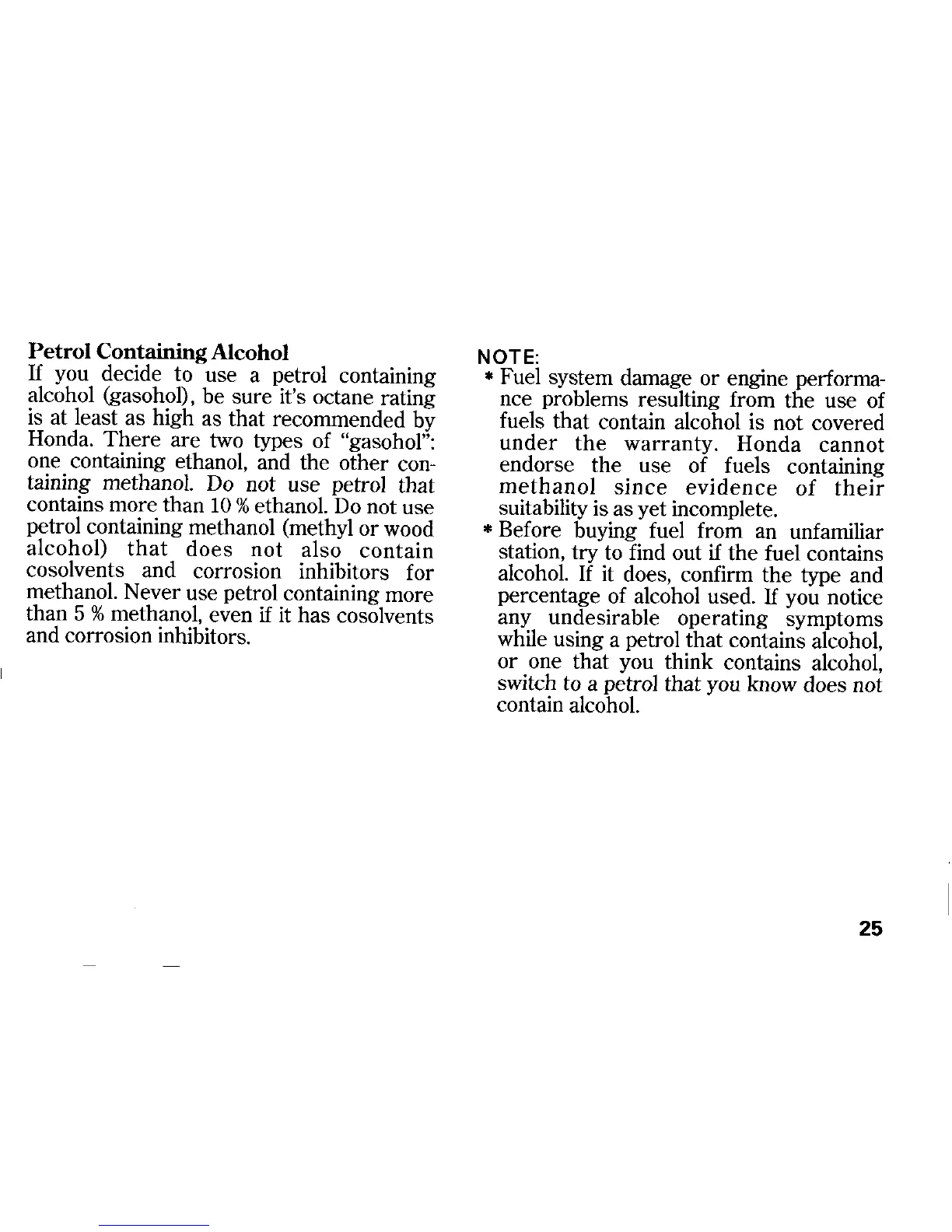 Honda CB600F - Petrol Containing Alcohol