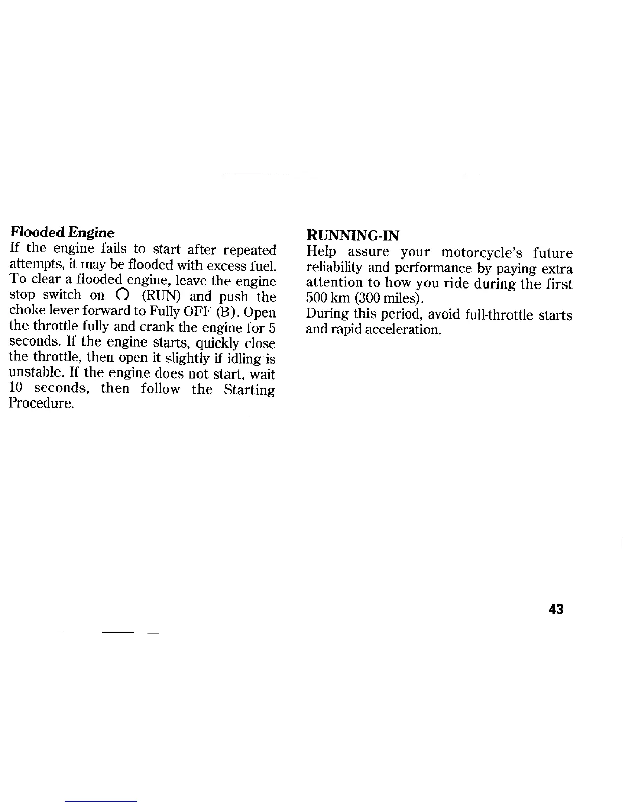 Honda CB600F - Flooded Engine; Running-In