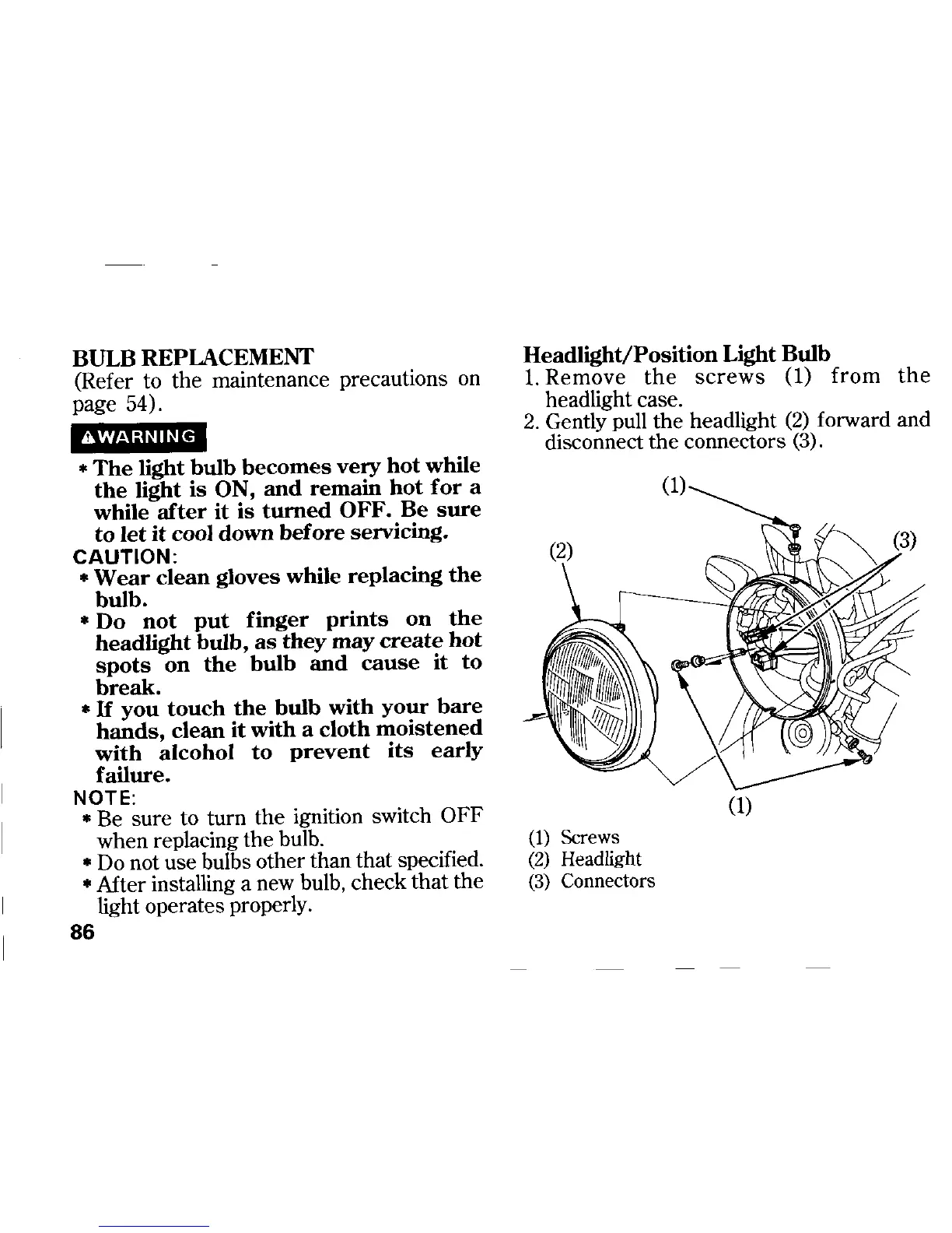Honda CB600F - Bulb Replacement; Headlight;Position Light Bulb