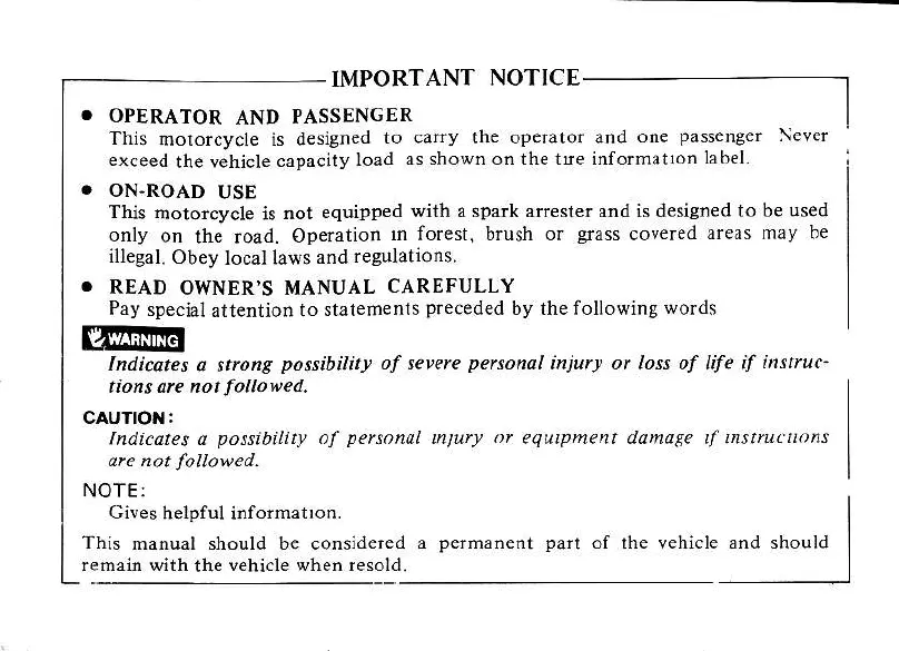 Honda CB650 Custom - Important Notices; Operator and Passenger Guidelines; On-Road Use and Regulations; Warning and Caution Symbols