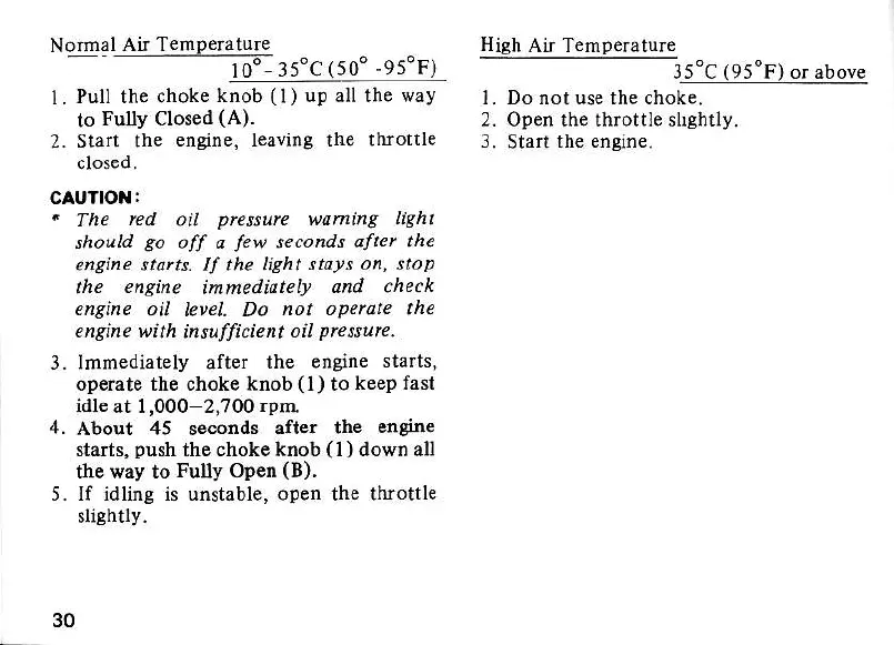 Honda CB650 Custom - Normal Air Temperature; High Air Temperature