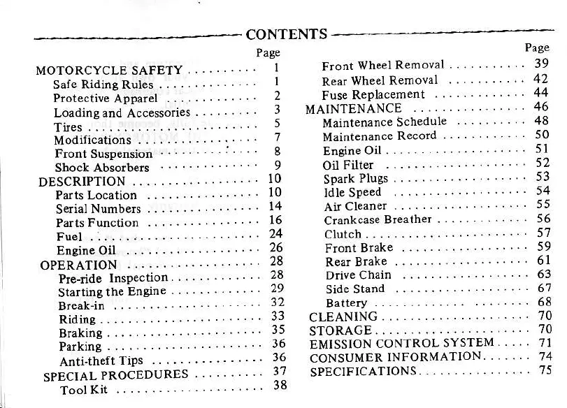 Honda CB650 Custom - Table of Contents