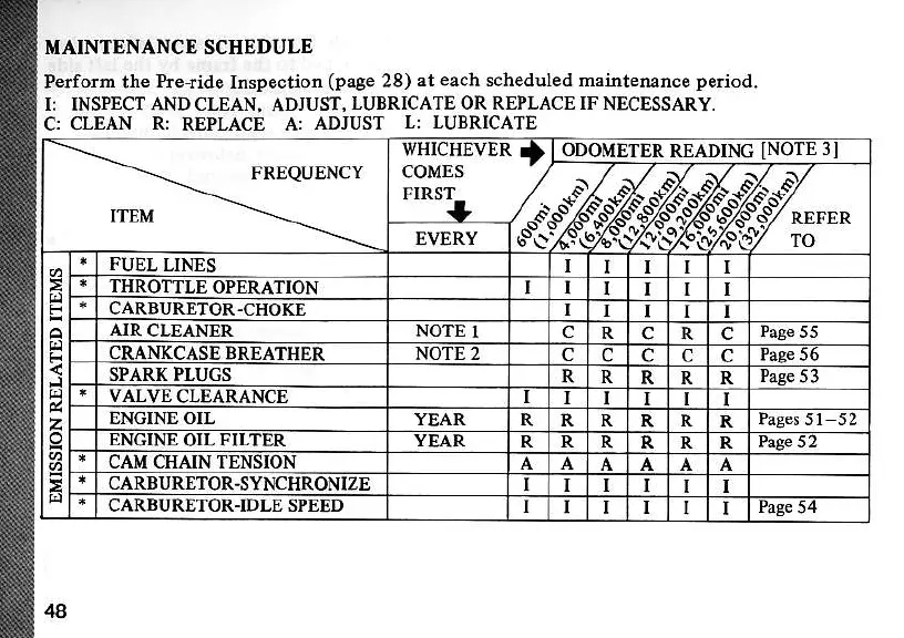 Honda CB650 Custom - Routine Maintenance Schedule