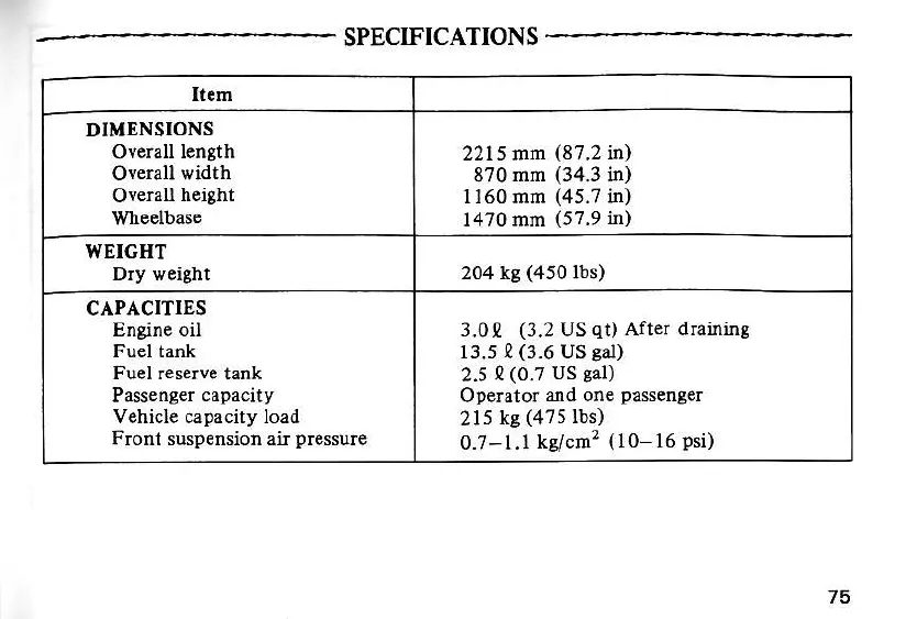 SPECIFICATIONS